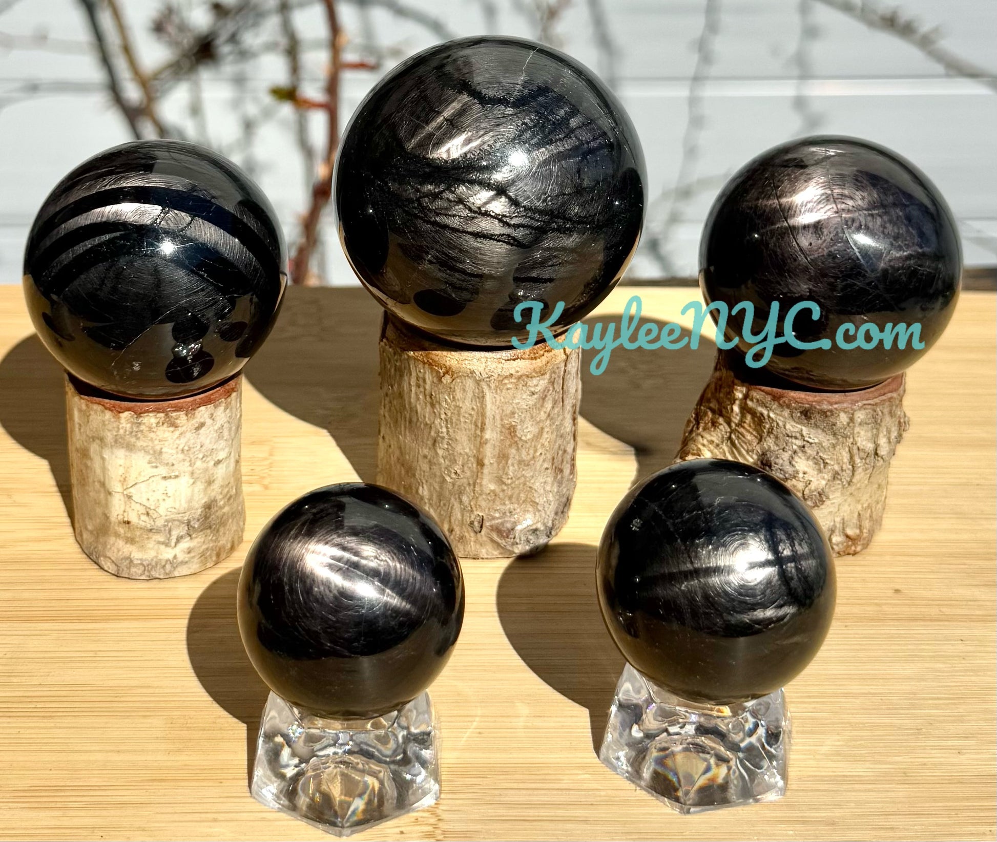 Wholesale lot 5 pcs Natural Hypersthene Sphere Crystal Ball. Sphere can range from 35mm to 60mm in size, total weight is between 1.9 to 2 lbs. Condition is New.