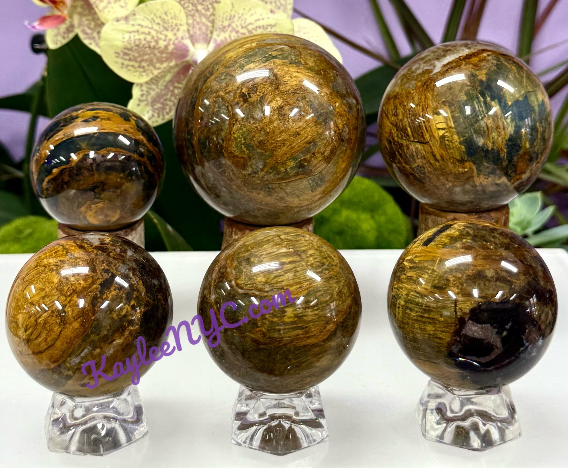 Wholesale lot 6 pcs Natural Pietersite Sphere Crystal Ball. These spheres can range from 45mm to 70mm, roughly 3.9 to 4 lbs per lot. Condition is New.