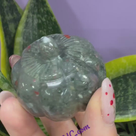 Wholesale lot 5 pcs 2” Natural Crystal Pumpkins that were hand carved and polished. You will receive 1 Orange Calcite, 2 Bloodstone, and 2 Indian moss Agate. Condition is New.