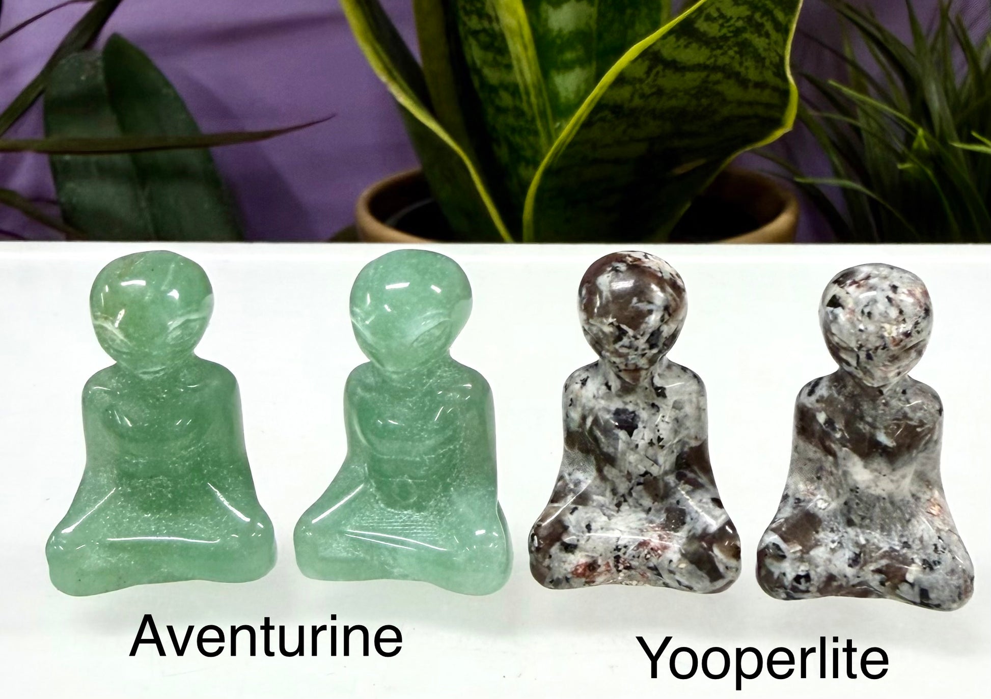 Wholesale lot 16 pcs 3cm Natural Crystal Alien, these Alien were hand carved and polished. You will receive 1 of each following: Tiger Eye, Chevron Amethyst, Silver Sheen Obsidian, Black Obsidian, Tree Agate, Kiwi Jasper, Yooperlite, Que Sera, Blue Que Sera, 2 Rose Quartz, Aventurine, Howlite, Blue Aventurine, Opalite, and Sodalite. Condition is New.