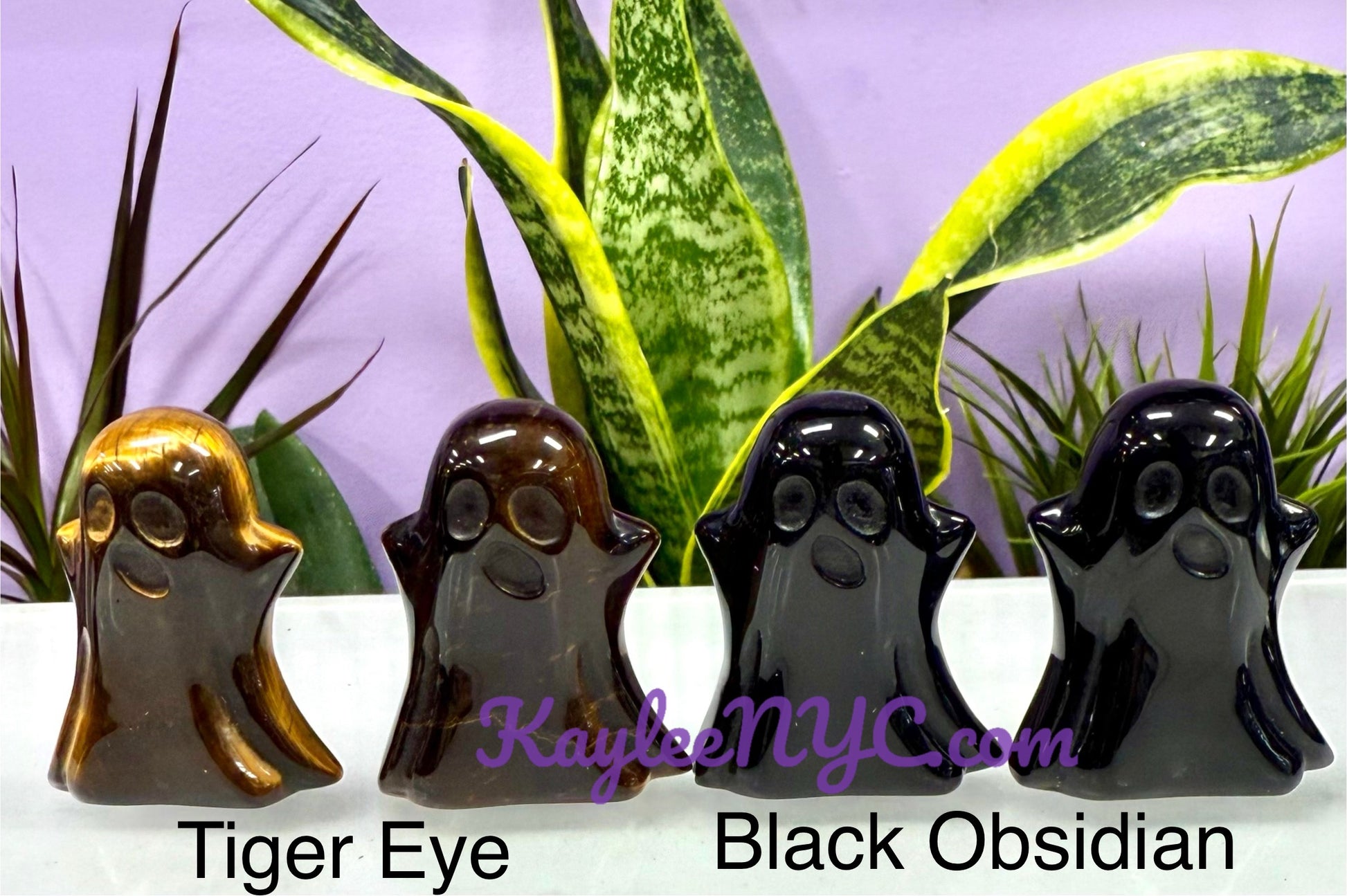 Wholesale lot 5 pcs 5cm Natural mix Crystal Ghost that were hand carved and polished. You will receive 1 Clear Quartz, 1 Rose Quartz, 1 Tiger Eye, 1 Aventurine, and 1 Black Obsidian. Condition is New.