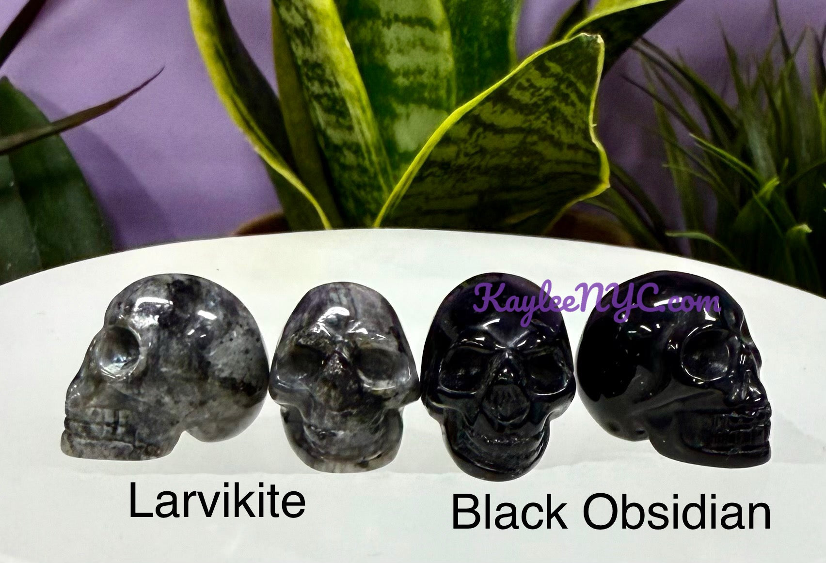 Wholesale lot 10 pcs 1” Natural Crystal Skull, these Skulls were hand carved and polished. You will receive 2 Rose Quartz, 3 Larvikite, 1 Sodalite, 4 Black Obsidian, 1 Mahogany Obsidian, and 1 Unakite. Condition is New.