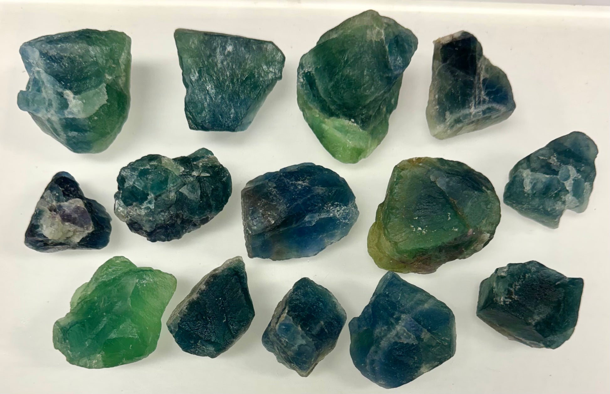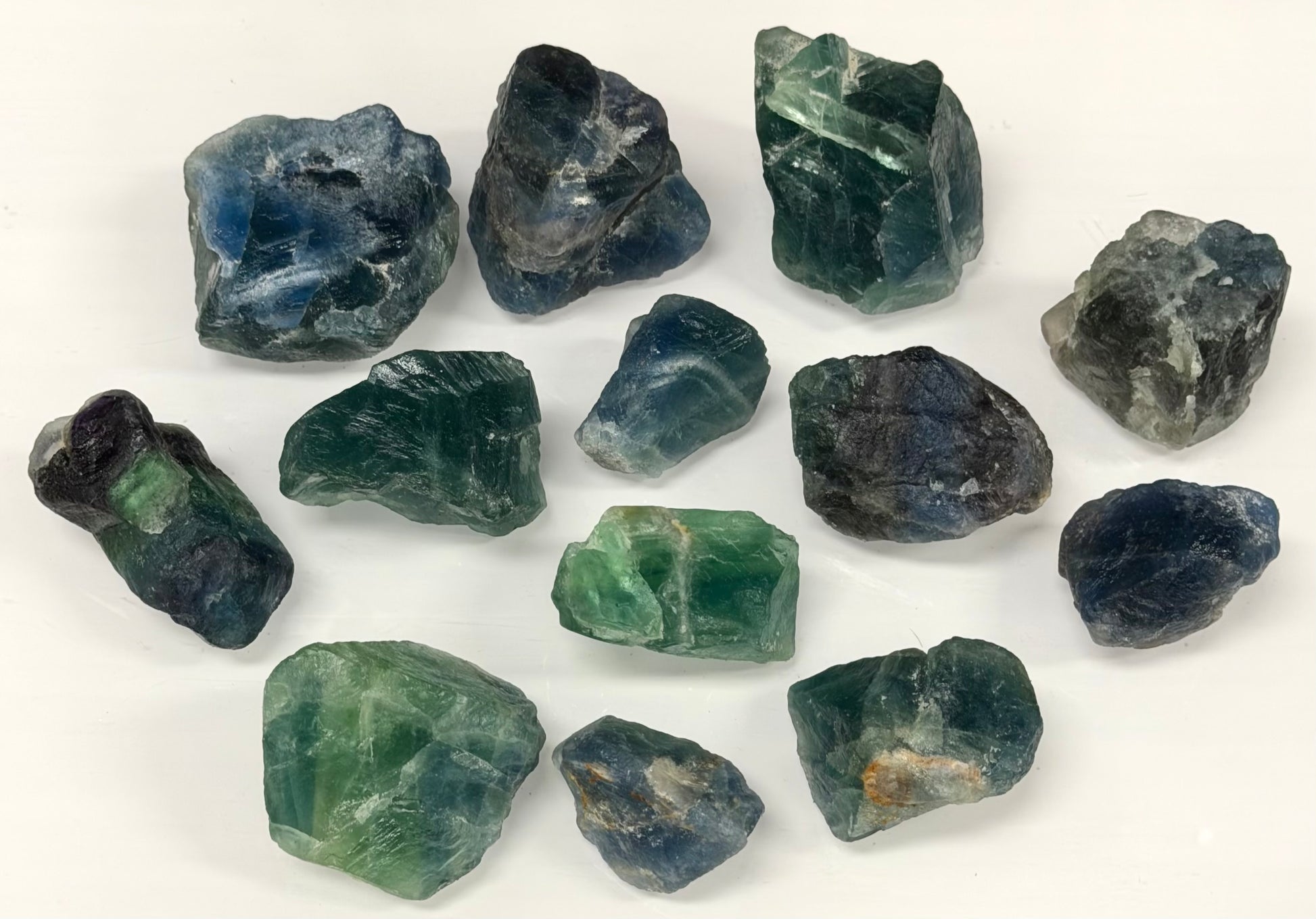 Wholesale Lot – 2 lbs Natural Blue-Green Fluorite Rough Crystals (Raw)