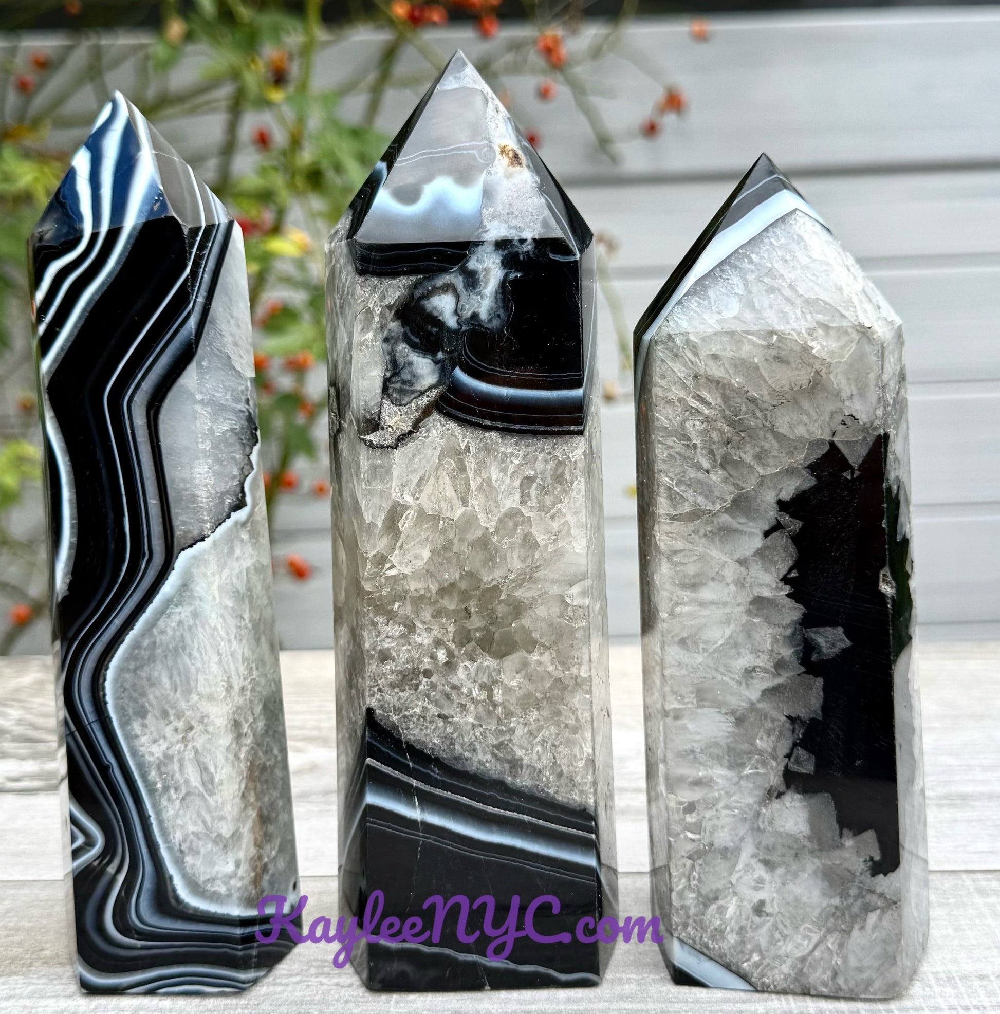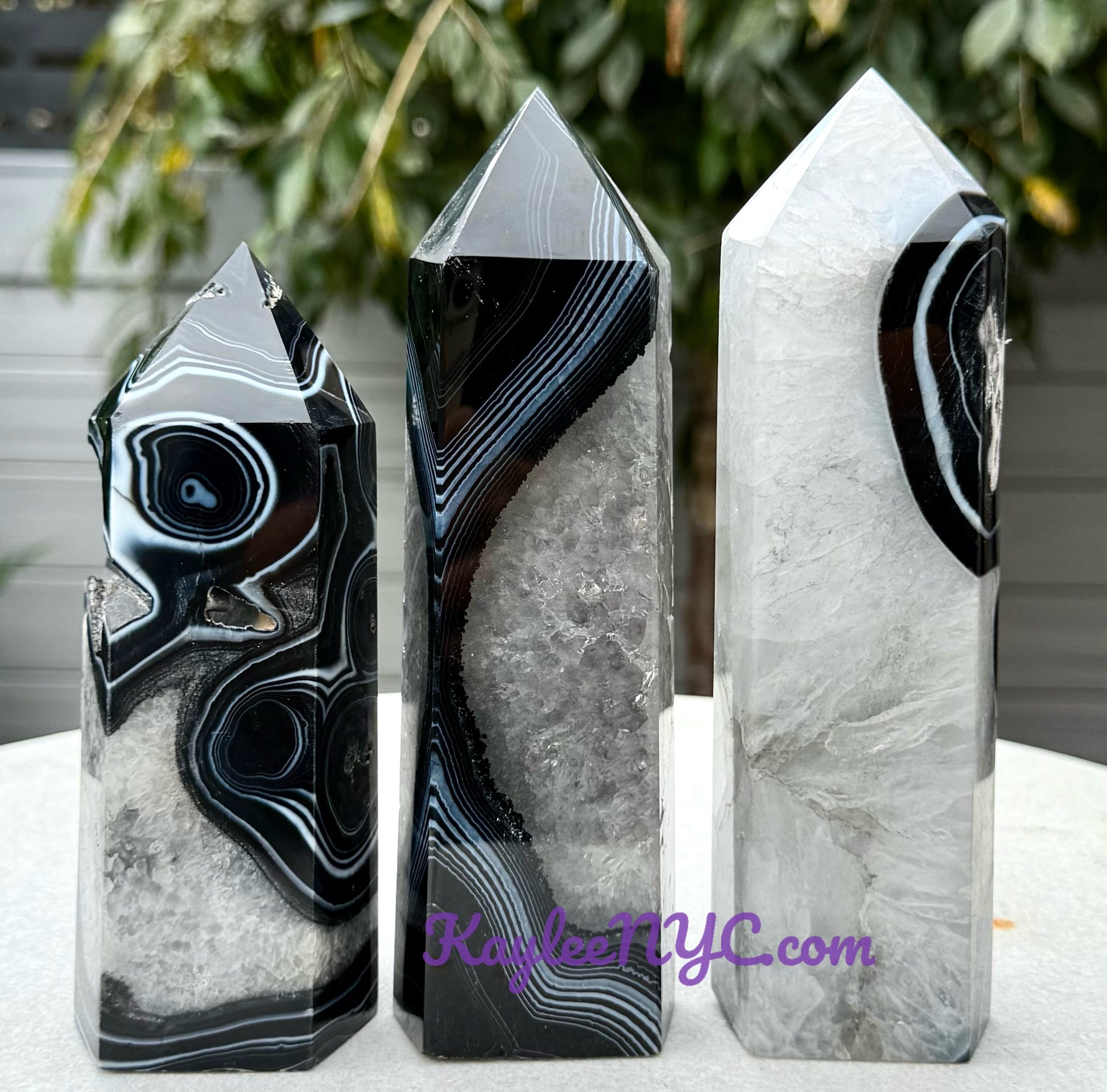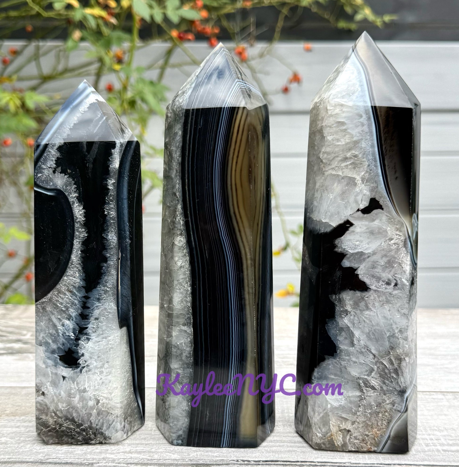 Wholesale lot 3 to 4 pcs Natural Black Agate Onyx crystal point. Roughly 4” to 7” in length, total weight is between 4.9 to 5 lbs. Condition is New.