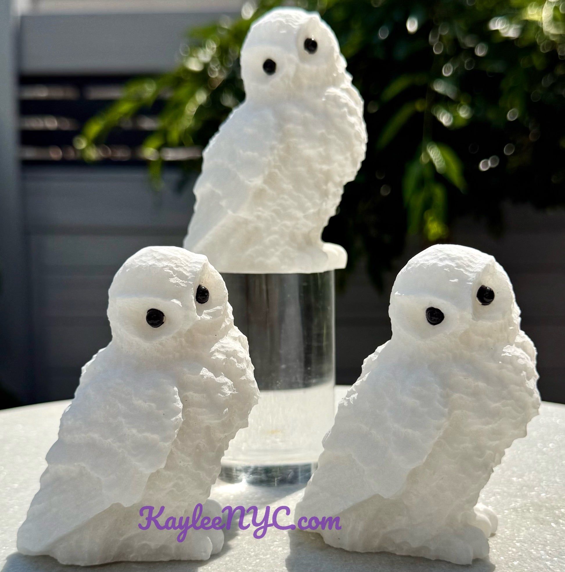 3 PCs Natural Snow Quartz Owls Crystals Healing Energy
