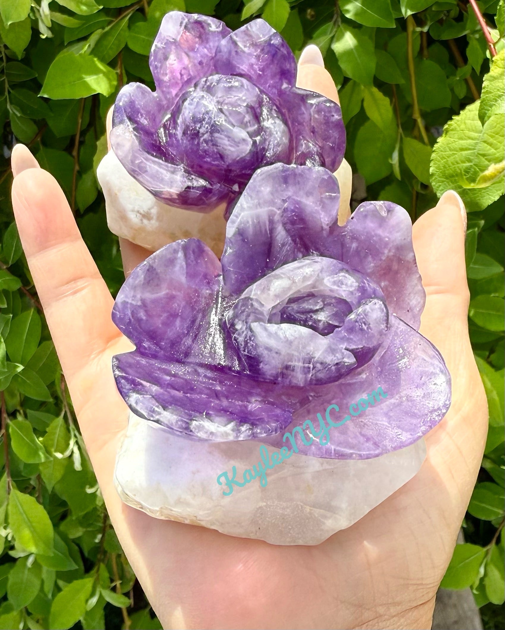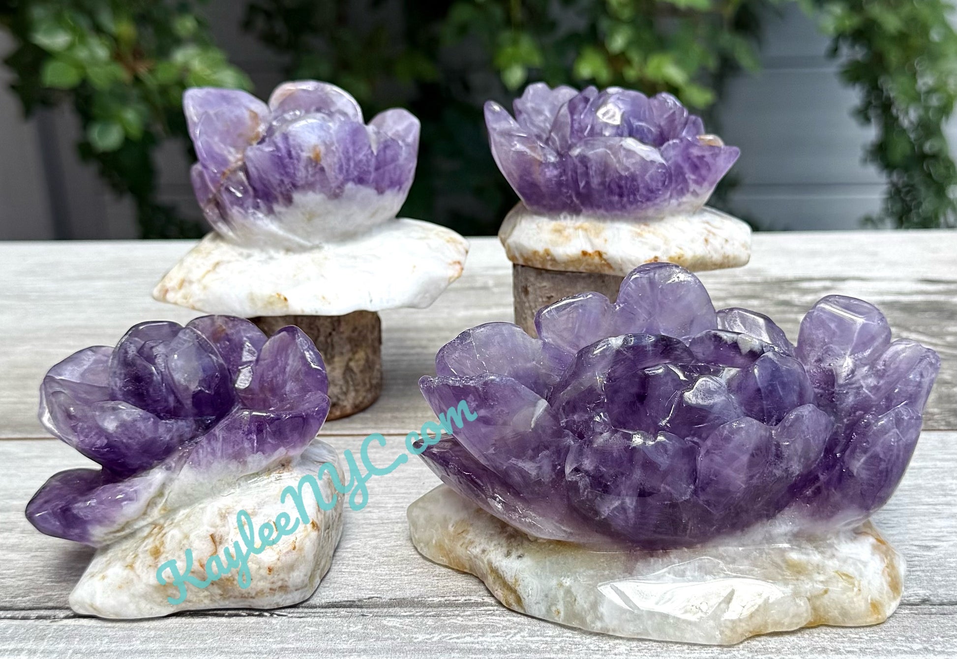 3-4 PCs Natural Amethyst Flowers Carving Crystals Healing Energy
