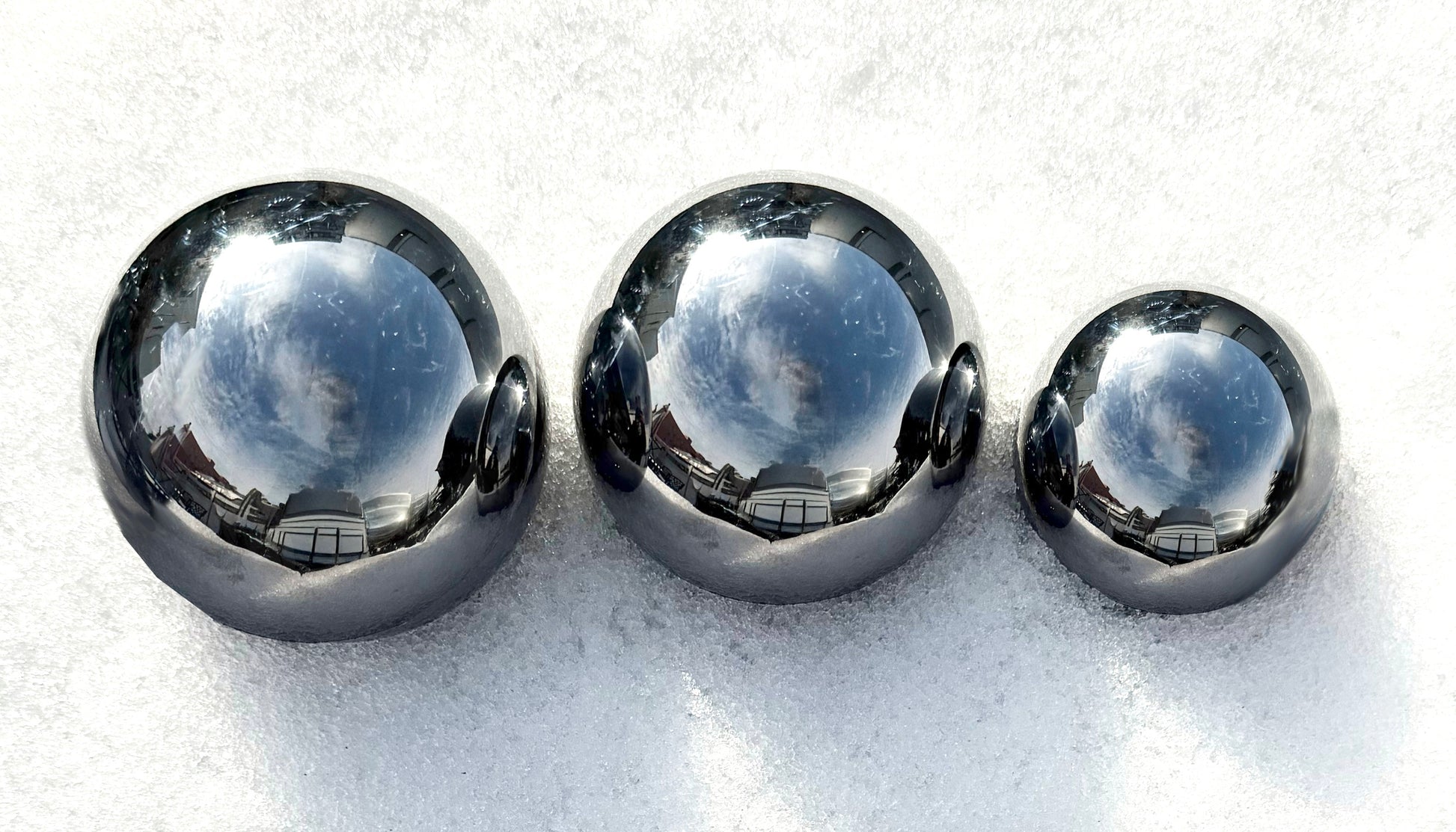 Each sphere ranges from approximately 50mm to 85mm in diameter. Total weight is roughly 2.8 to 3 lbs per lot. These spheres are polished and in new condition.