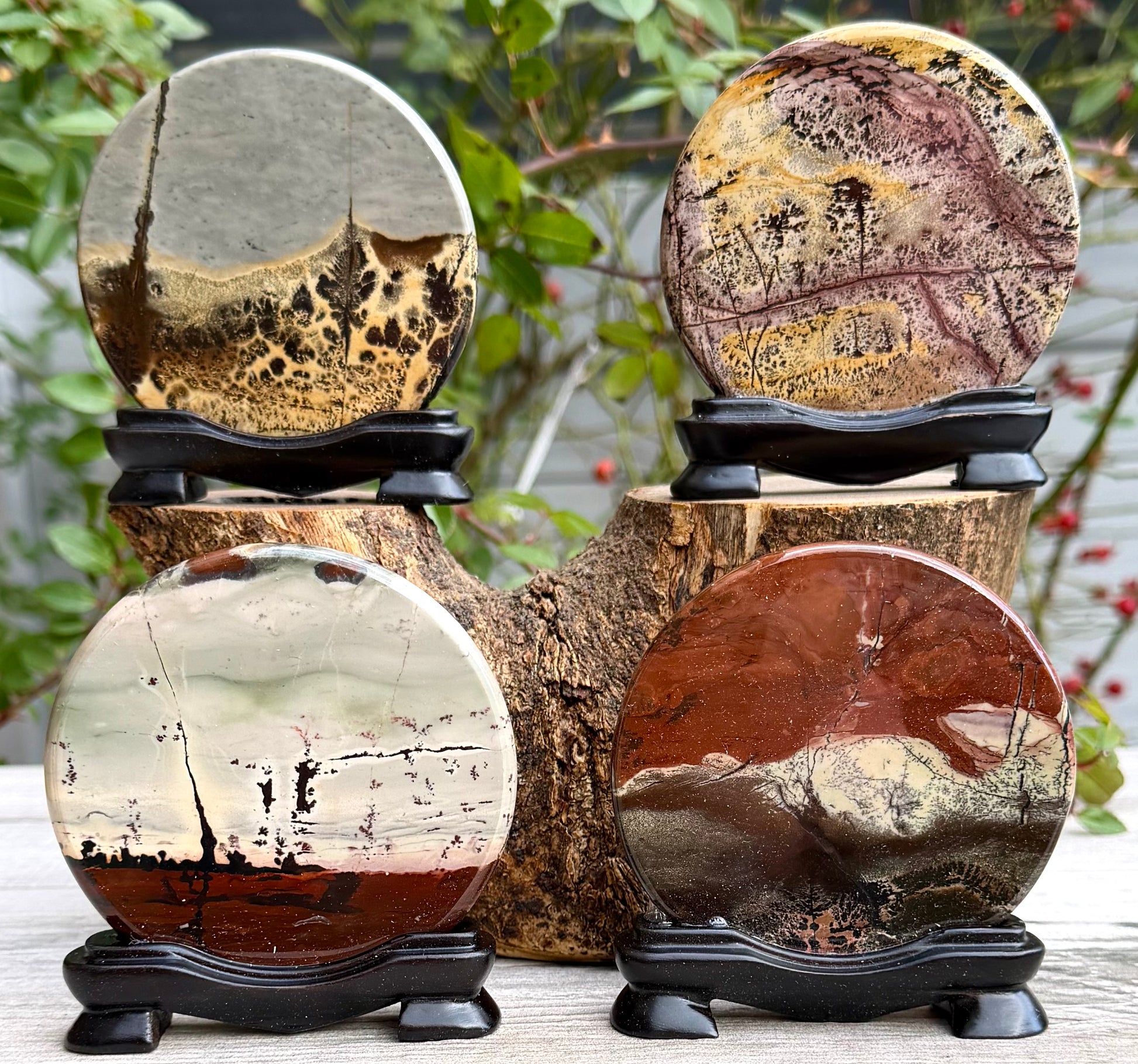 4PCs Natural Picture Jasper polished Slabs with stand