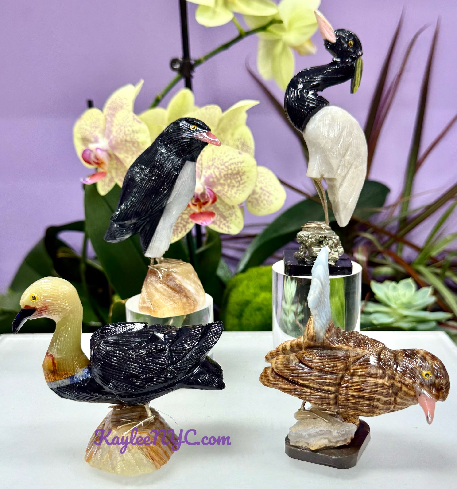 Wholesale lot 4 pcs Mix Natural Crystal Birds. Birds are hand crafted in Peru and crystals are found in Peru as well. You will receive 1 Penguin, 1 Swan, 1 Crane, and 1 Wren.