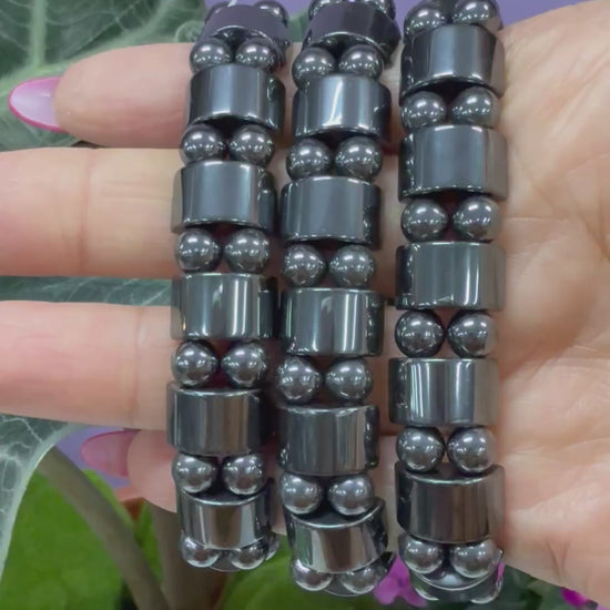 6 Pcs 15mm Natural Hematite Stretch Bracelet 7.5” Crystal Healing Energy
