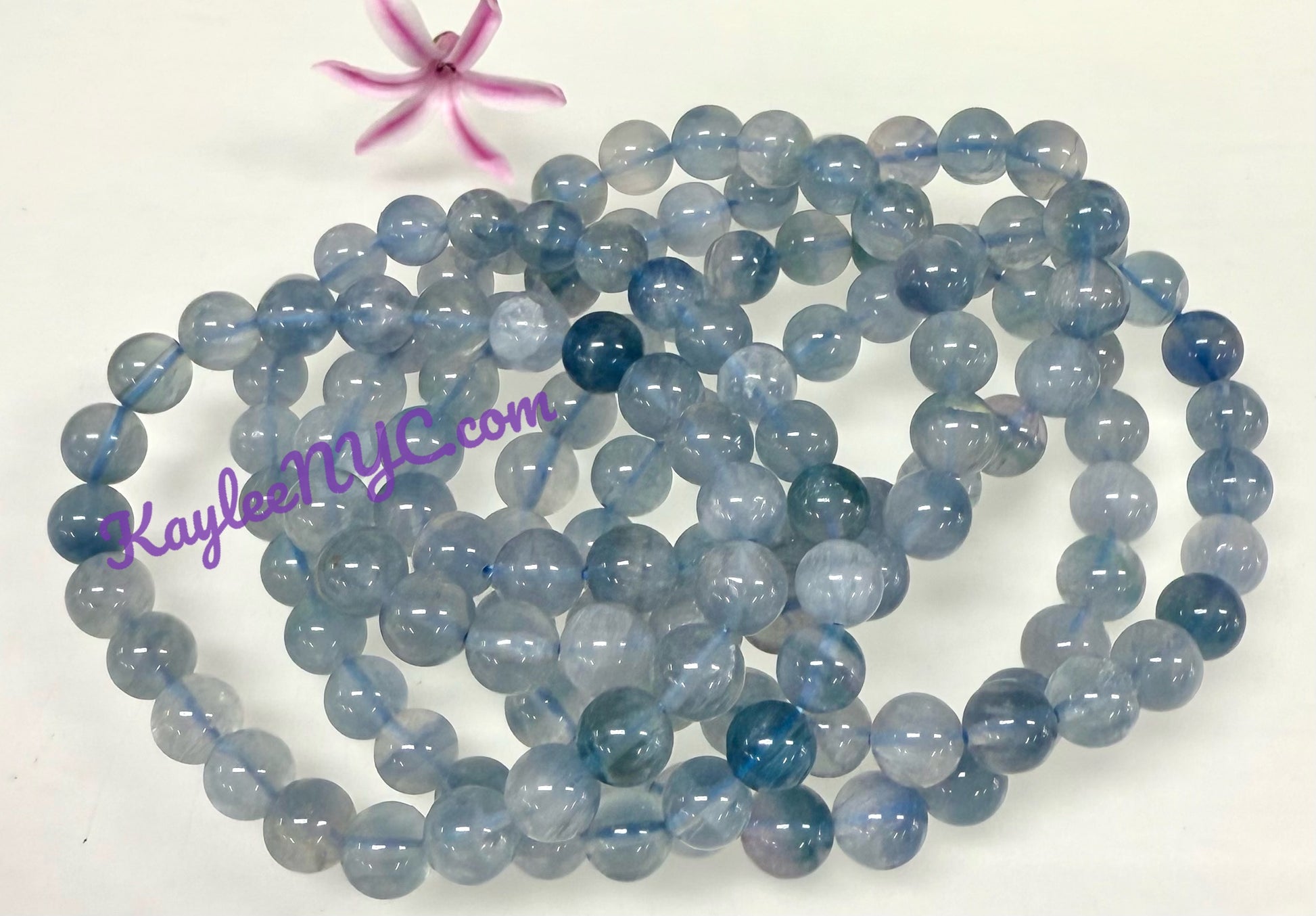 6 PCs 8mm Natural Blue Fluorite Stretch Bracelet 7.5”