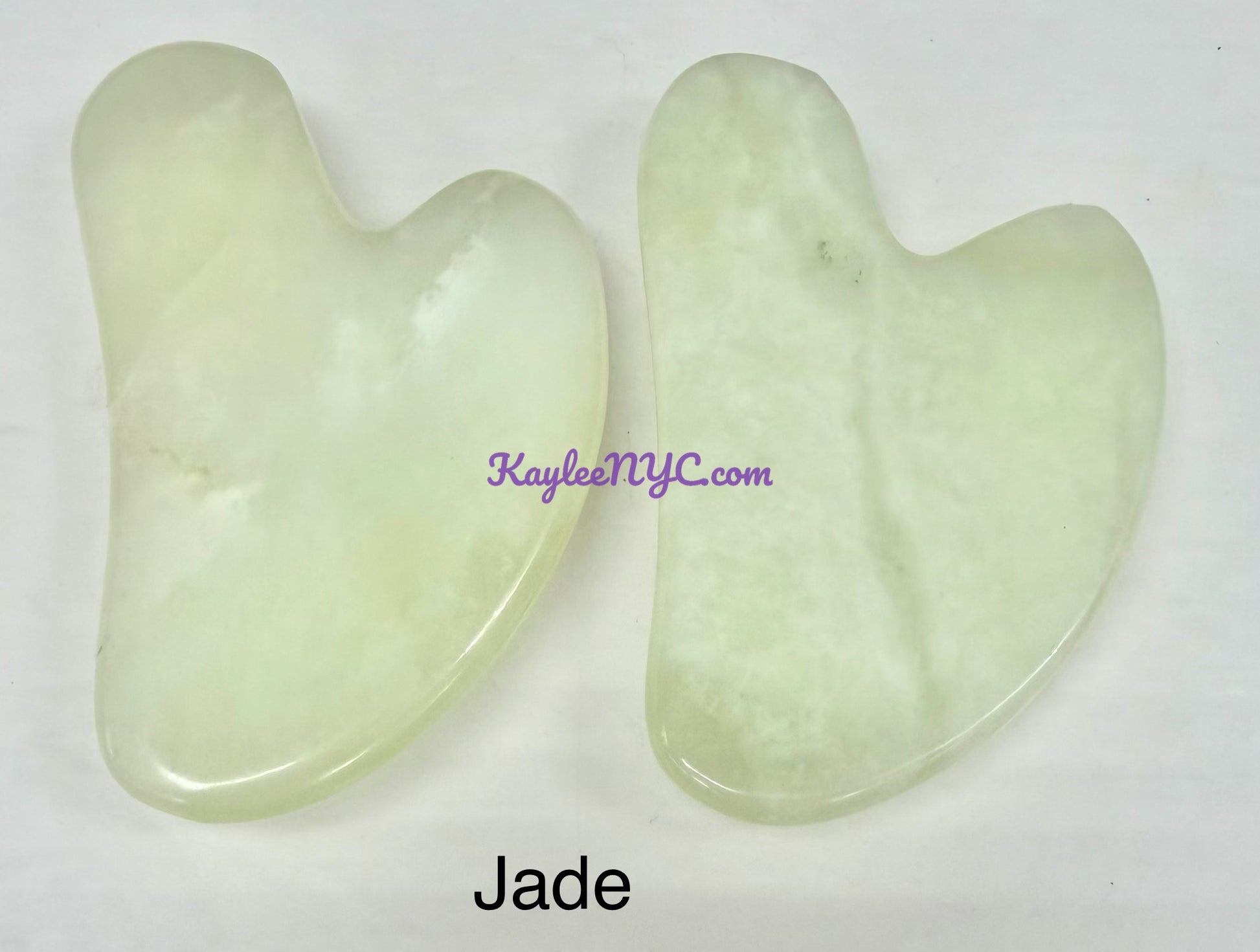 Wholesale lot 6 PCs Natural Crystal Gua Sha Facial Massage Heart. These Gua Sha’s can range from 3” to 3.3”. You will receive 2 Rose Quartz, 2 Jade, and 2 Black Obsidian. Condition is New.