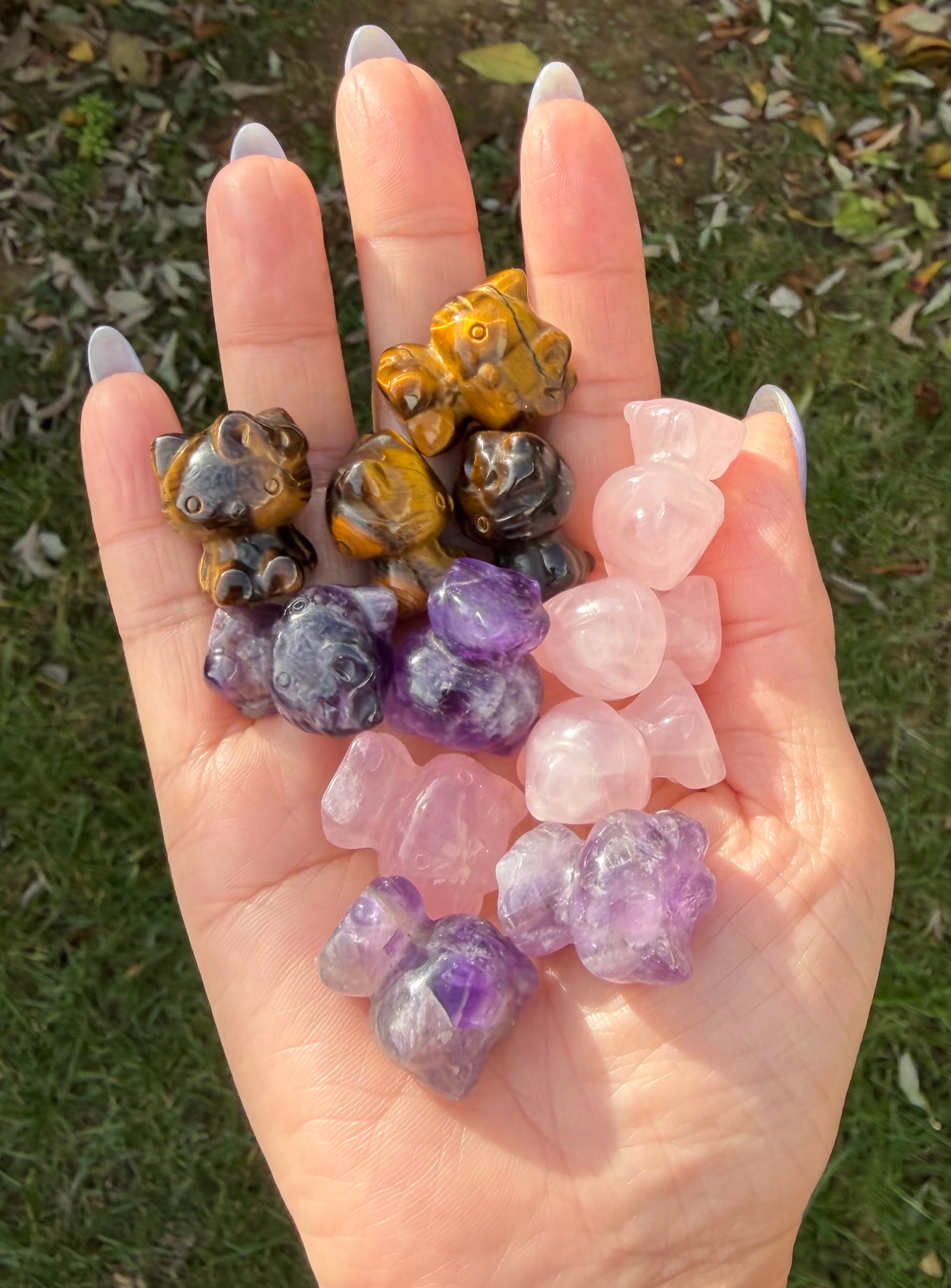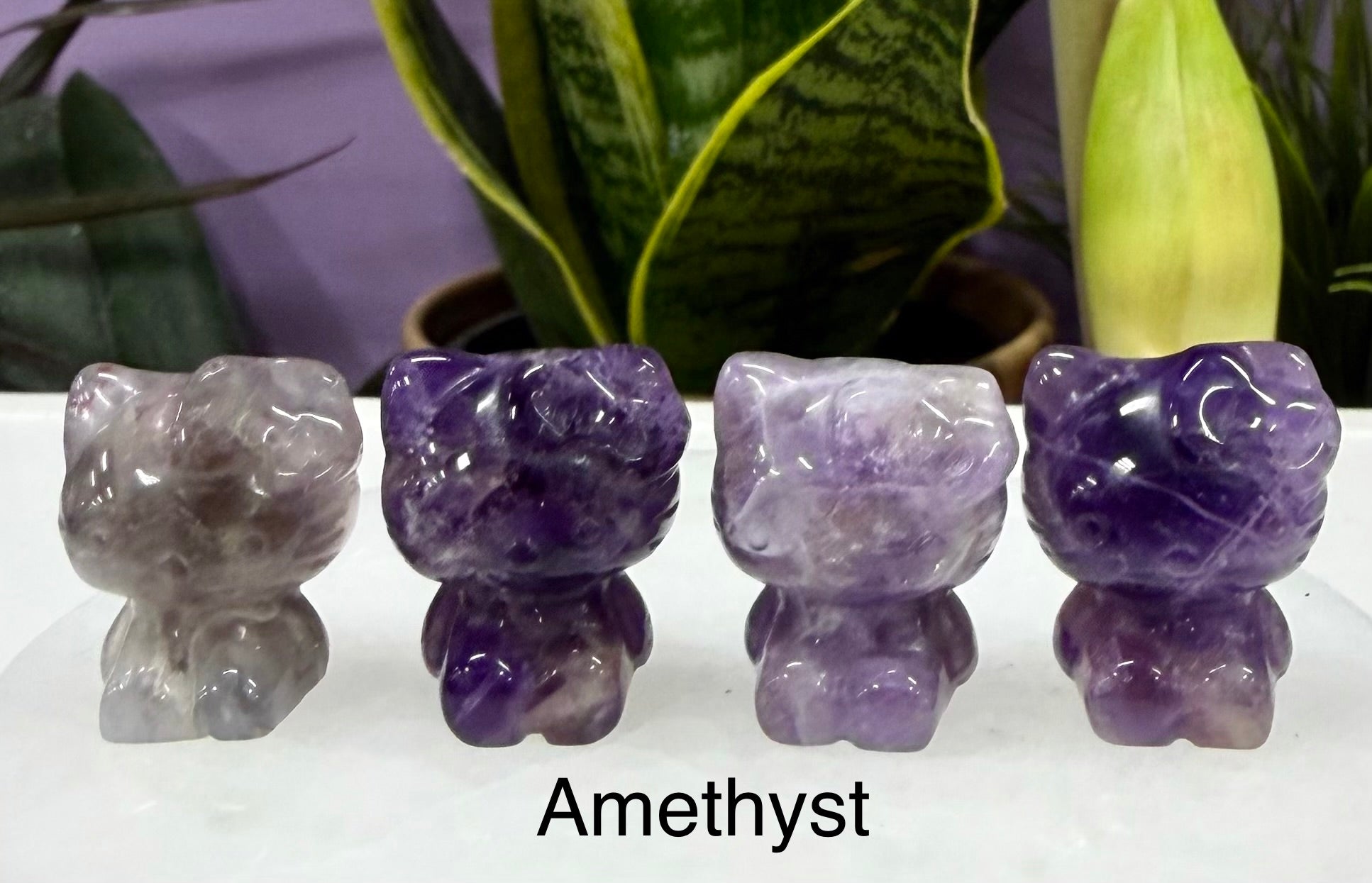 12 pcs Natural Mix Crystal 1” Hello Kitty Cat Healing Energy