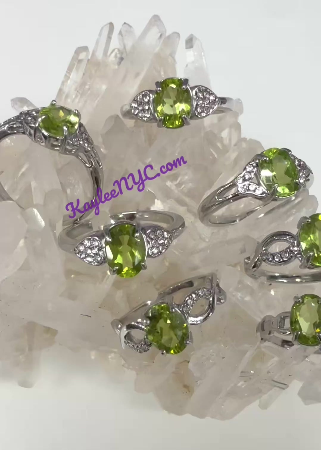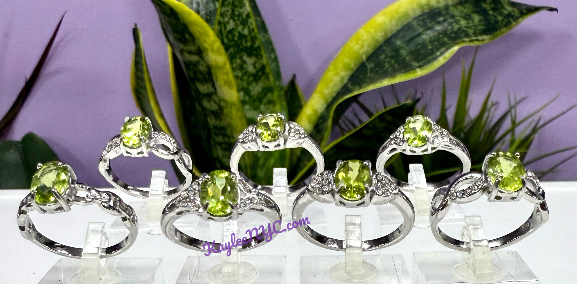 Wholesale lot 7 pcs natural Peridot Stainless Steel(316). Size of the Peridot are roughly around 5x7mm each. You will receive 1 size 6, 2 size 7, 2 size 8, 1 size 9, and 1 size 10. Condition is New.