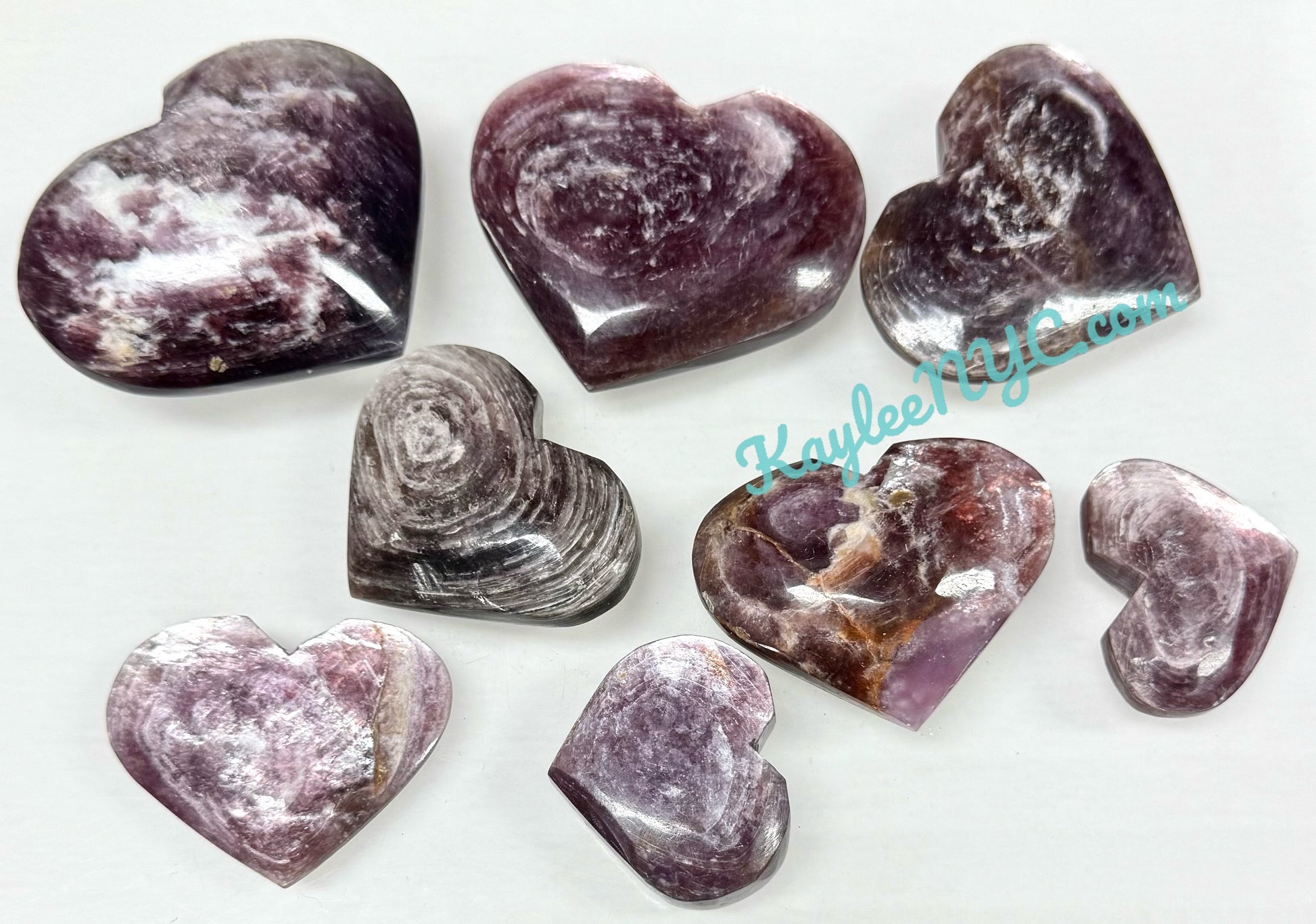 Wholesale Lot 1 lb Natural Lepidolite Crystal Heart. These hearts can range from 25mm to 45mm. Condition is New.