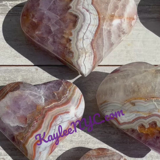 Wholesale 2 Lb Lot Natural Amethyst Lace Agate Heart Crystal Energy