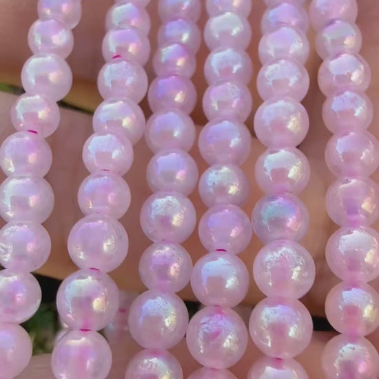 Wholesale 6 Pcs Angel Aura Rose Quartz 4mm 7.5” Crystal Healing Stretch Bracelet