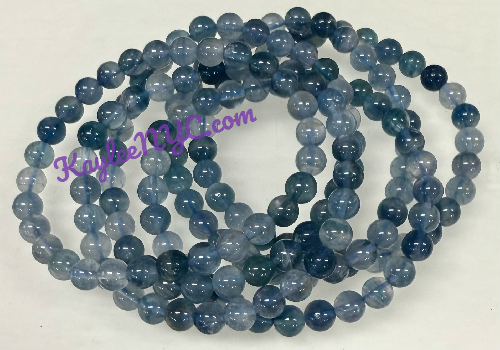 Wholesale 6 Pcs Natural Blue Fluorite 6mm 7.5” Crystal Stretch Bracelet. Condition is New.