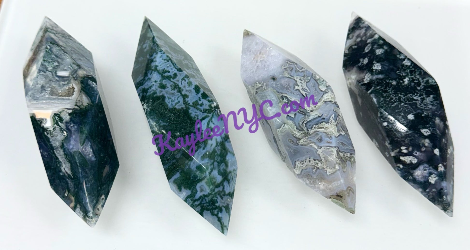 Wholesale Lot 4 to 5 PCs Natural Moss Agate Prism. Roughly 2” to 3” in length, total weight is between 1.9 to 2 lbs per lot.