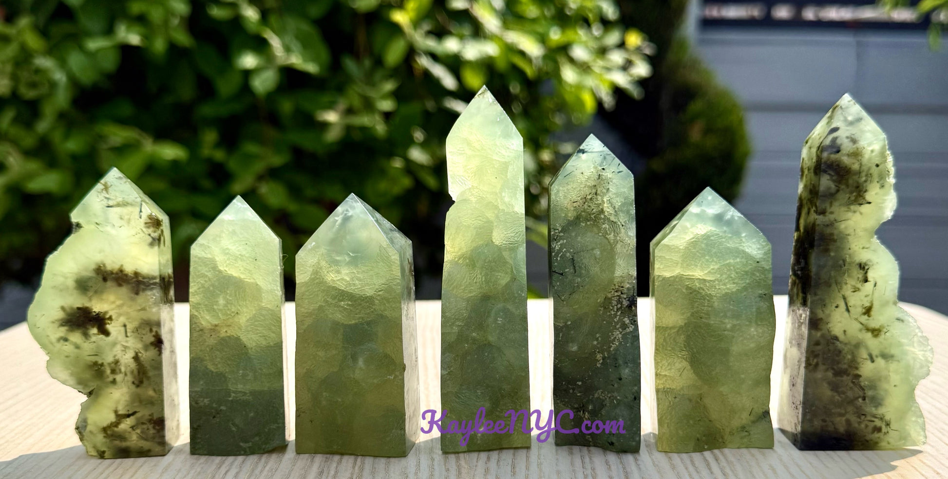 Wholesale lot 2 lbs Natural Prehnite with Epidote half Rough Obelisk crystals. Range from 2” - 4” in length and 6 to 8 pcs per lot. Condition is New.