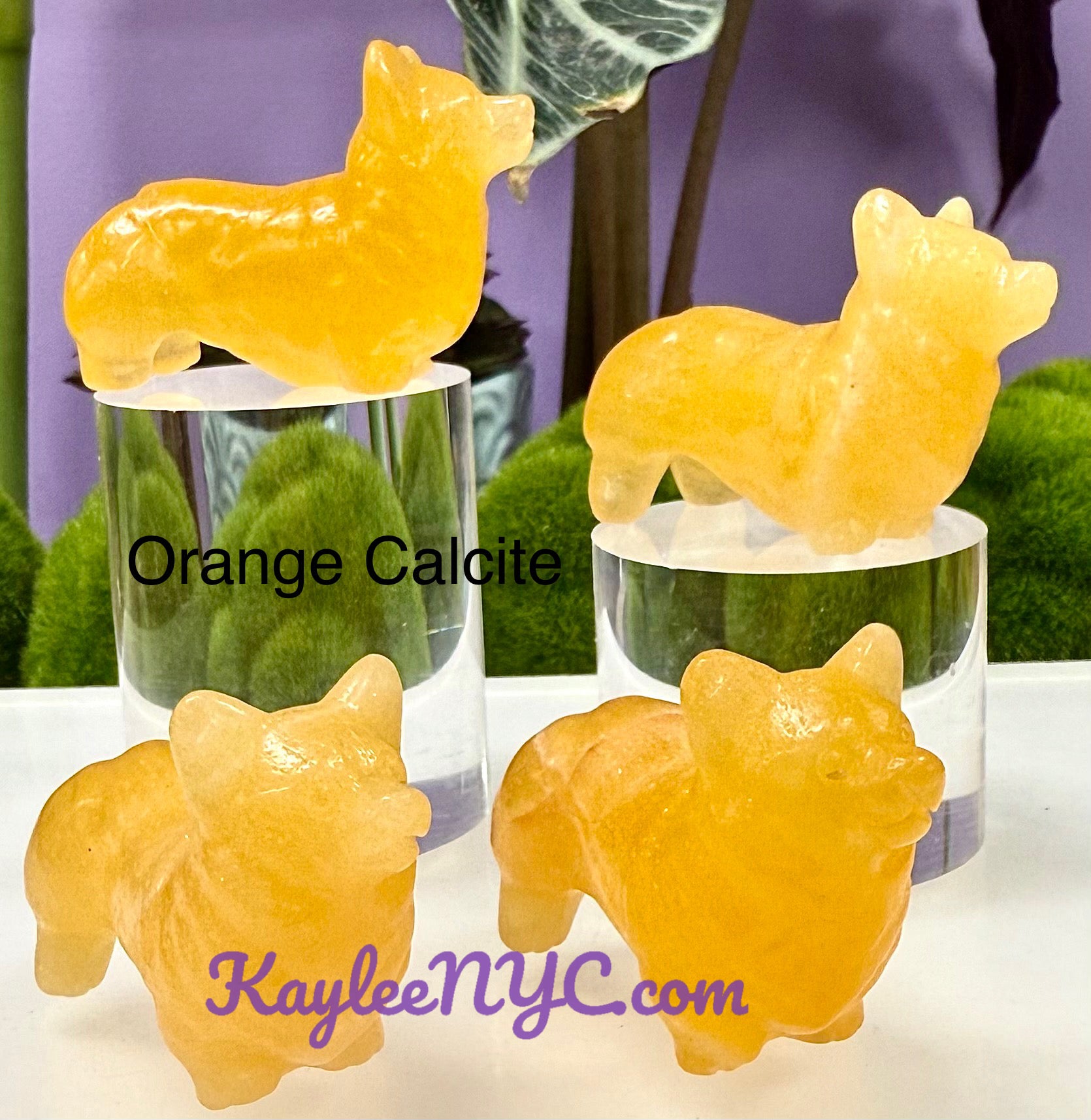 Wholesale lot 6 pcs natural crystals Corgi, these Corgis were hand carved and polished. You will receive 2 Rose Quartz, 2 Black Obsidian, and 2 Orange Calcite. Condition is New.