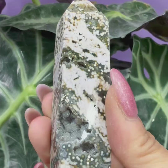 Wholesale lot 1 lb Natural Ocean Jasper Obelisk point crystals. Range from 2” to 3.5” tall and 5 to 7 pcs per lot. Condition is New.