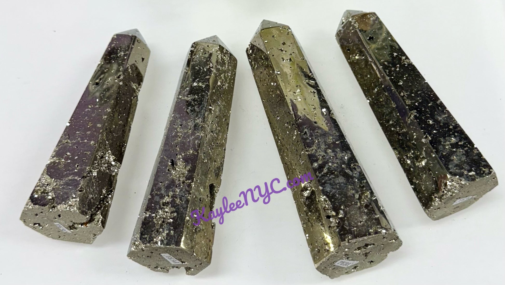 Wholesale lot 4 pcs natural Pyrite Obelisk crystal towers. Roughly 3” to 4” in tall, total weight is between 2.3 to 2.5 lbs per lot. Pyrite is found and made in Peru. Condition is New.