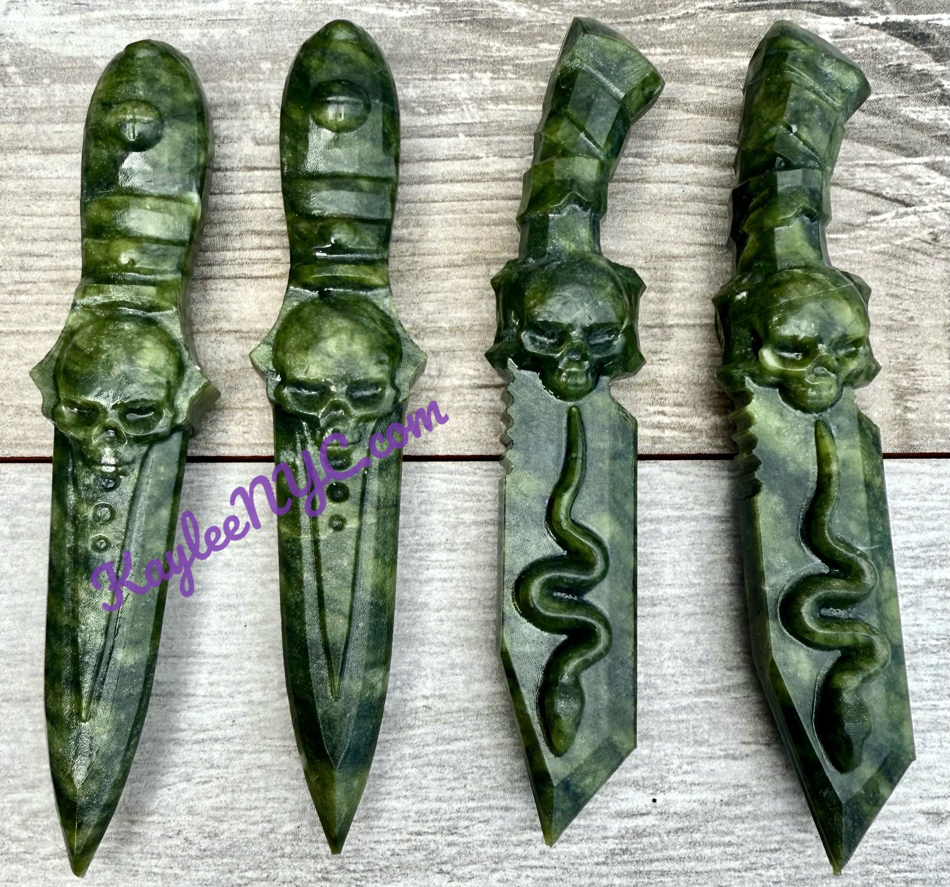 Wholesale Lot 4 pcs Natural Nephrite Jade Knife Crystals Healing Energy
