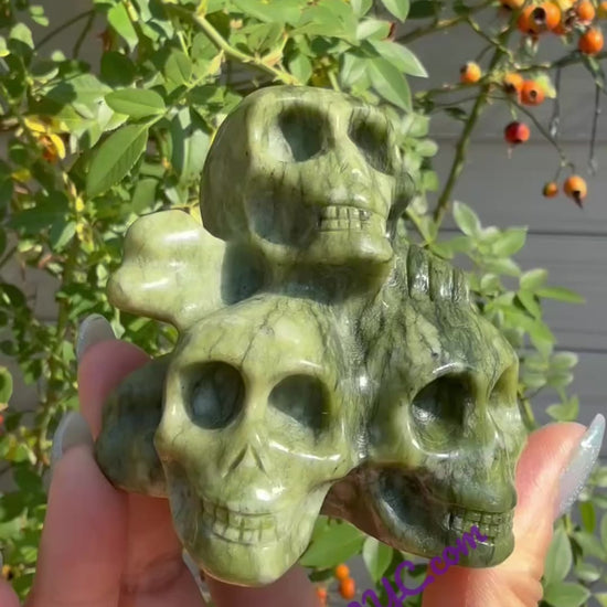 Wholesale Lot 4 Pcs Natural Nephrite Jade Crystal Skulls. Total weight is between 3lbs to 3.3 lbs per lot. Condition is New.
