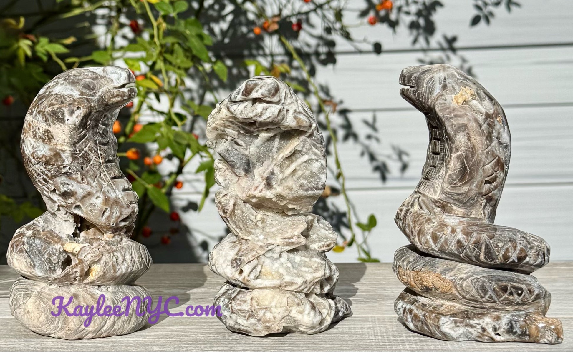 Wholesale Lot 3 Pcs Natural Sphalerite Cobra Snakes. Snakes can range from 13cm to 14.5cm, total weight is between 4.9 to 5 lbs per lot. Condition is New.