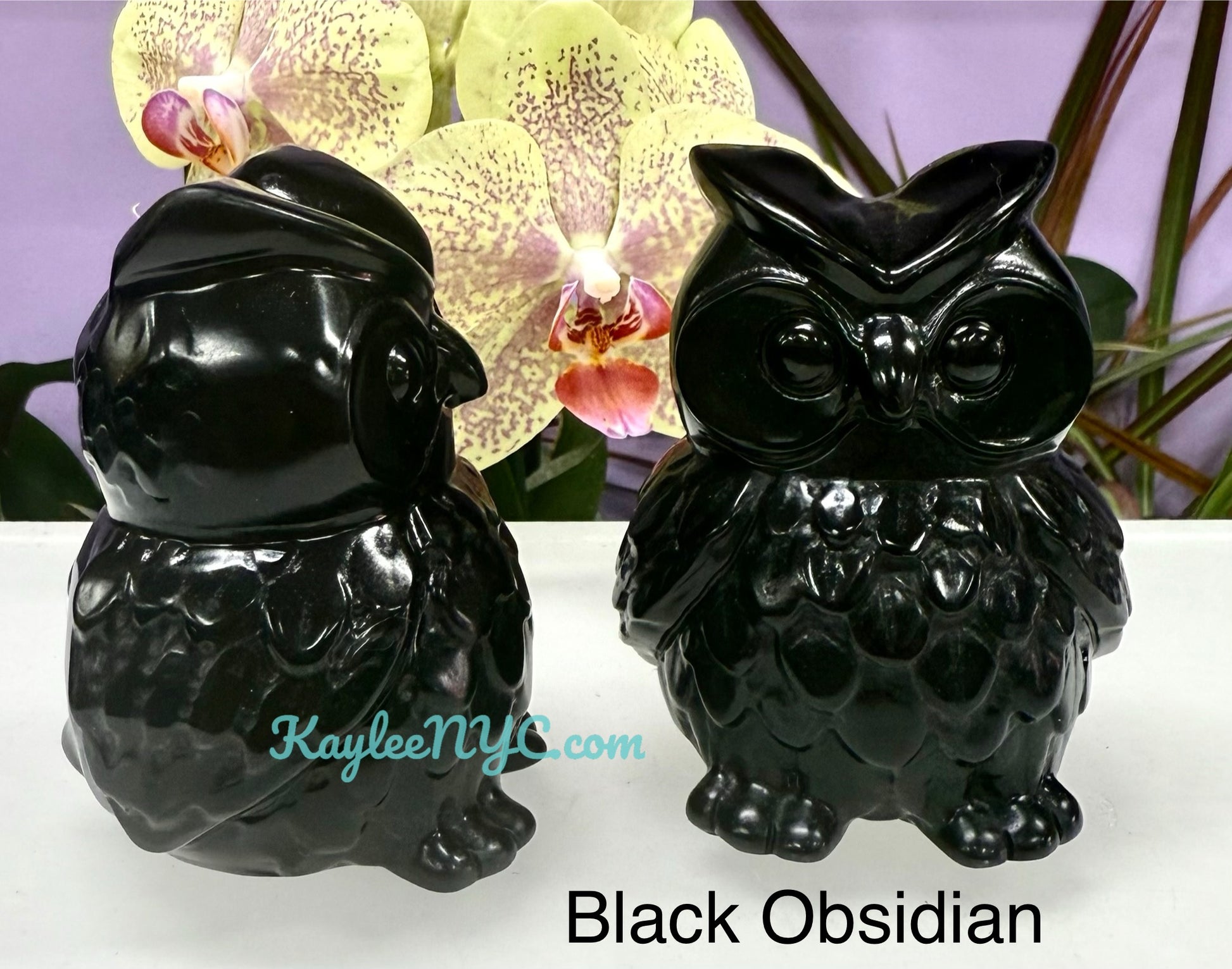 Wholesale Lot 4 pcs Natural Black Obsidian Yooperlite aka Emberlite Owls Crystals Healing Energy