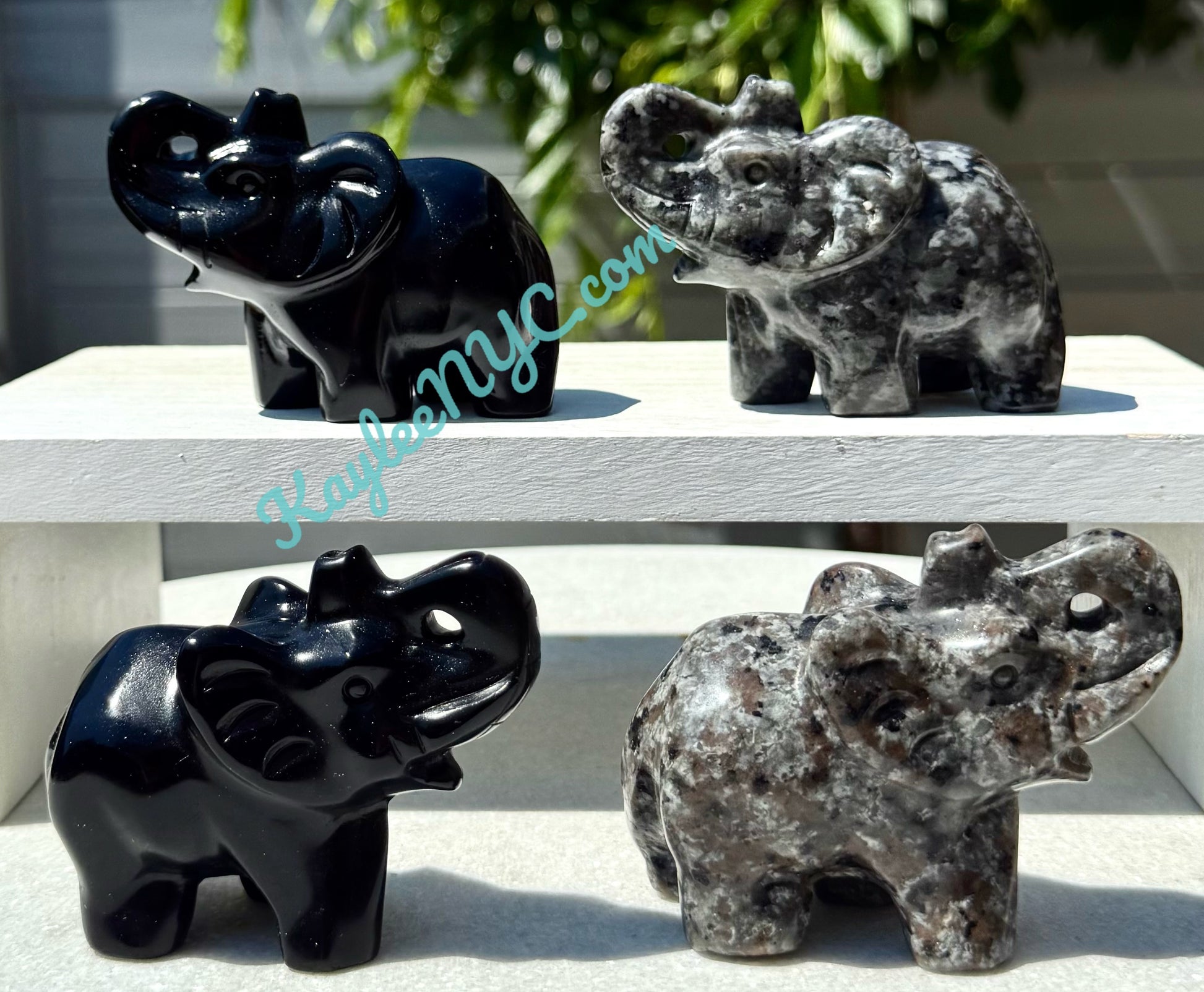 Wholesale Lot 4 pcs Natural Black Obsidian Yooperlite aka Emberlite Elephants Crystals Healing Energy