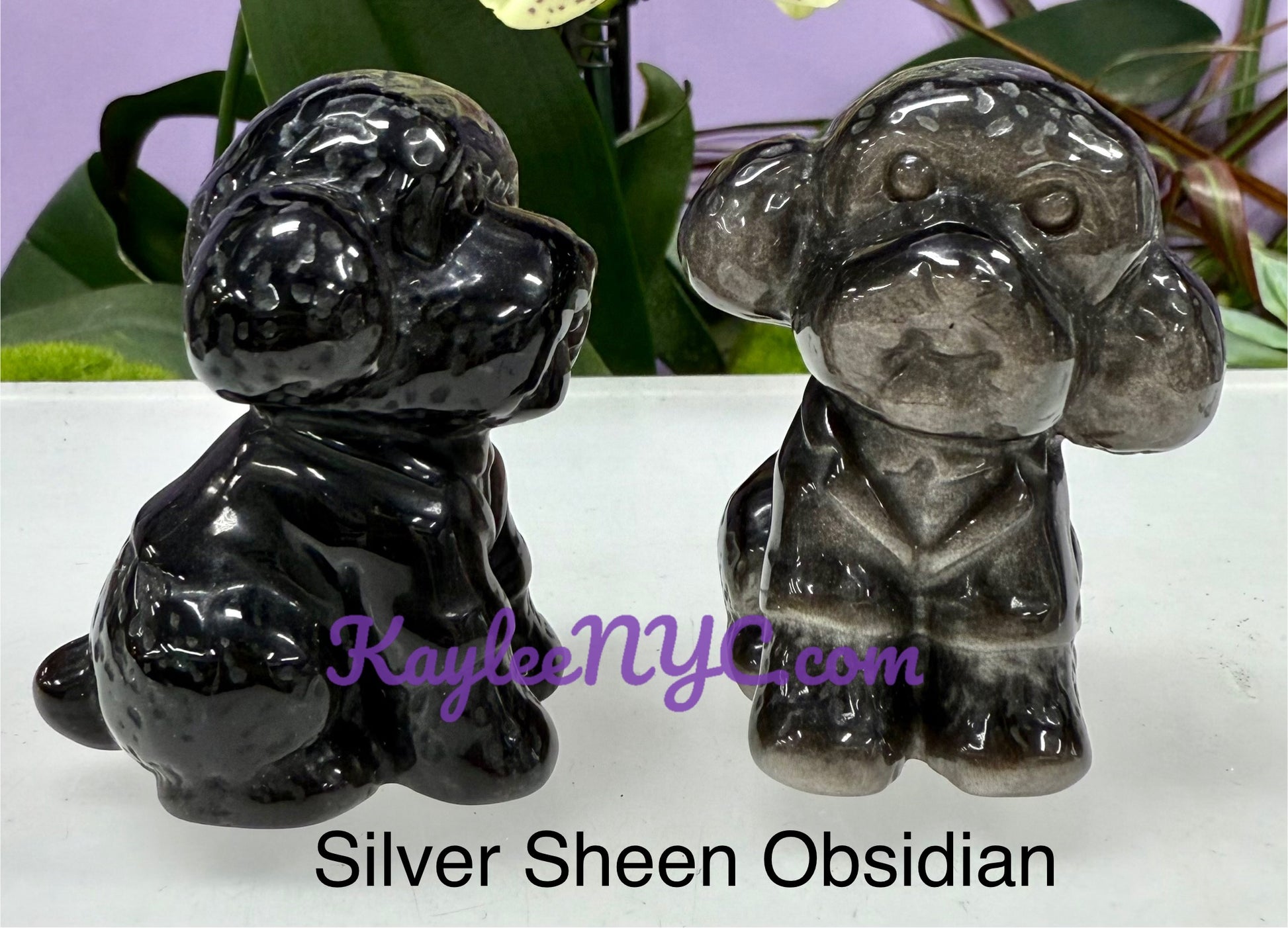 Wholesale Lot 6 Pcs 6cm Natural Crystals Toy Poodle. You will receive 2 Silver Sheen Obsidian, 2 Rose Quartz, and 2 Clear Quartz. Condition is New.