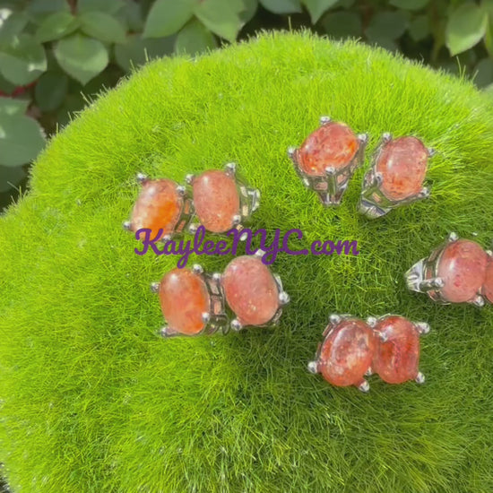 Wholesale Lot 5 Pairs Natural Sunstone Sterling Silver(925) Earring Studs, size of the Sunstone is 5x7mm. Condition is New.