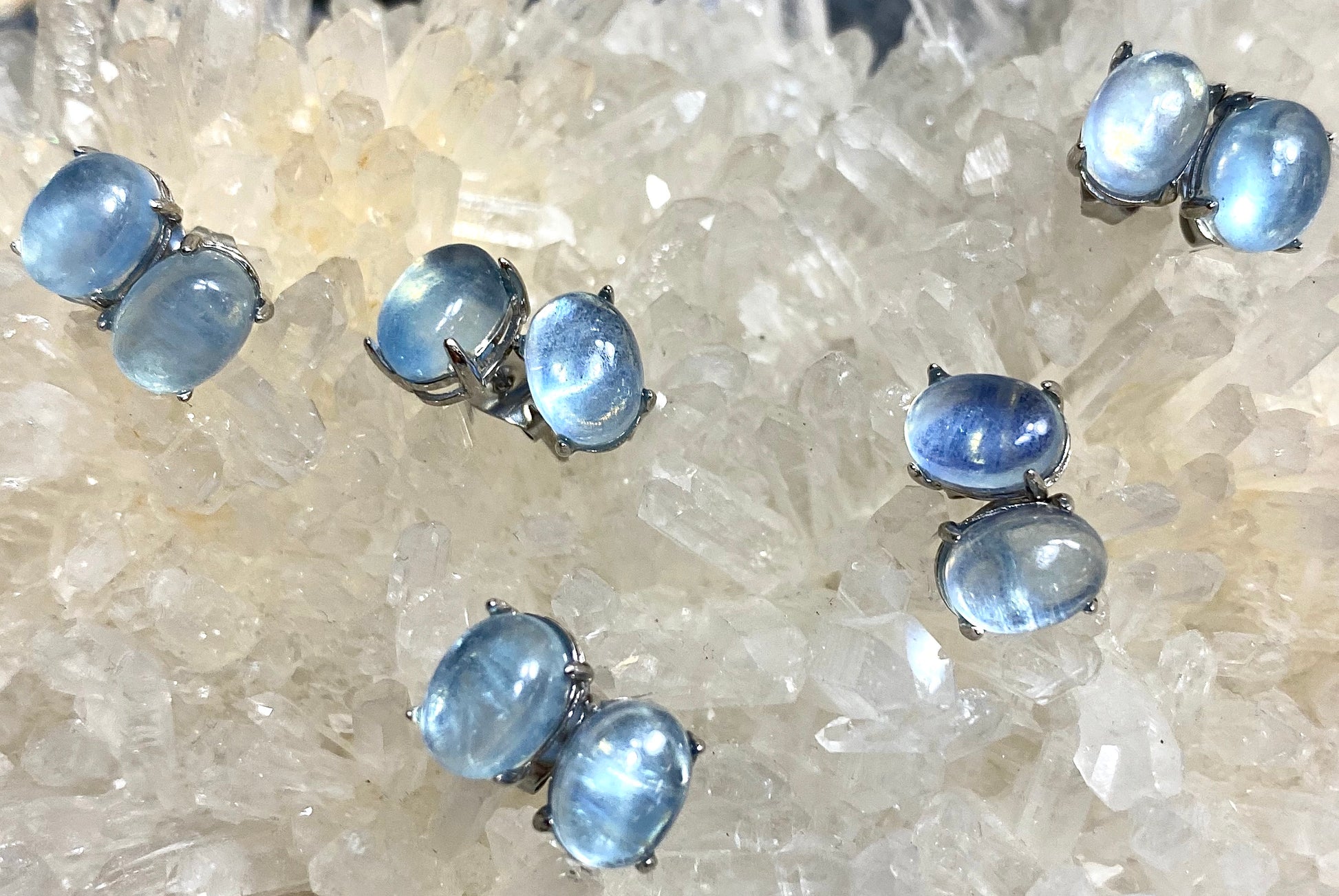 Wholesale Lot 5 Pairs Natural Aquamarine Sterling Silver(925) Earring Studs 6x8mm