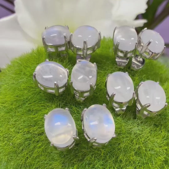 Wholesale Lot 5 Pairs Natural Moonstone Sterling Silver(925) Earring Studs, size of the Monnstone is 7x9mm. Condition is New.