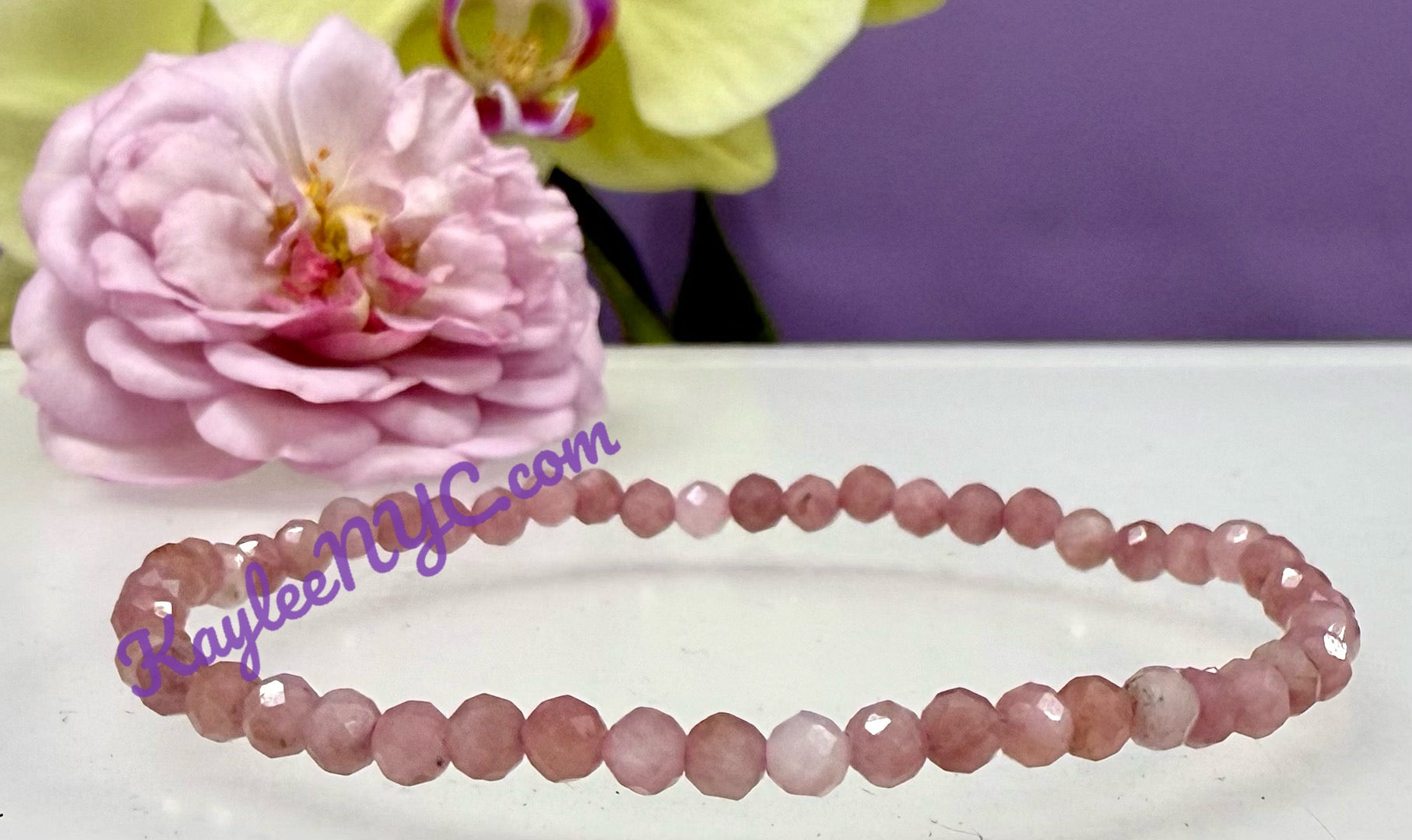 Wholesale Lot 6 Pcs Natural Faceted Pink Opal 4mm 7.5” Crystal Healing Stretch Bracelet