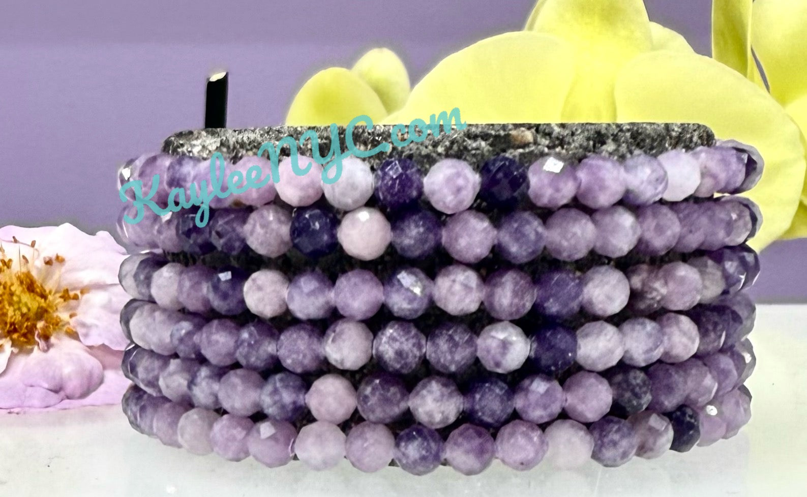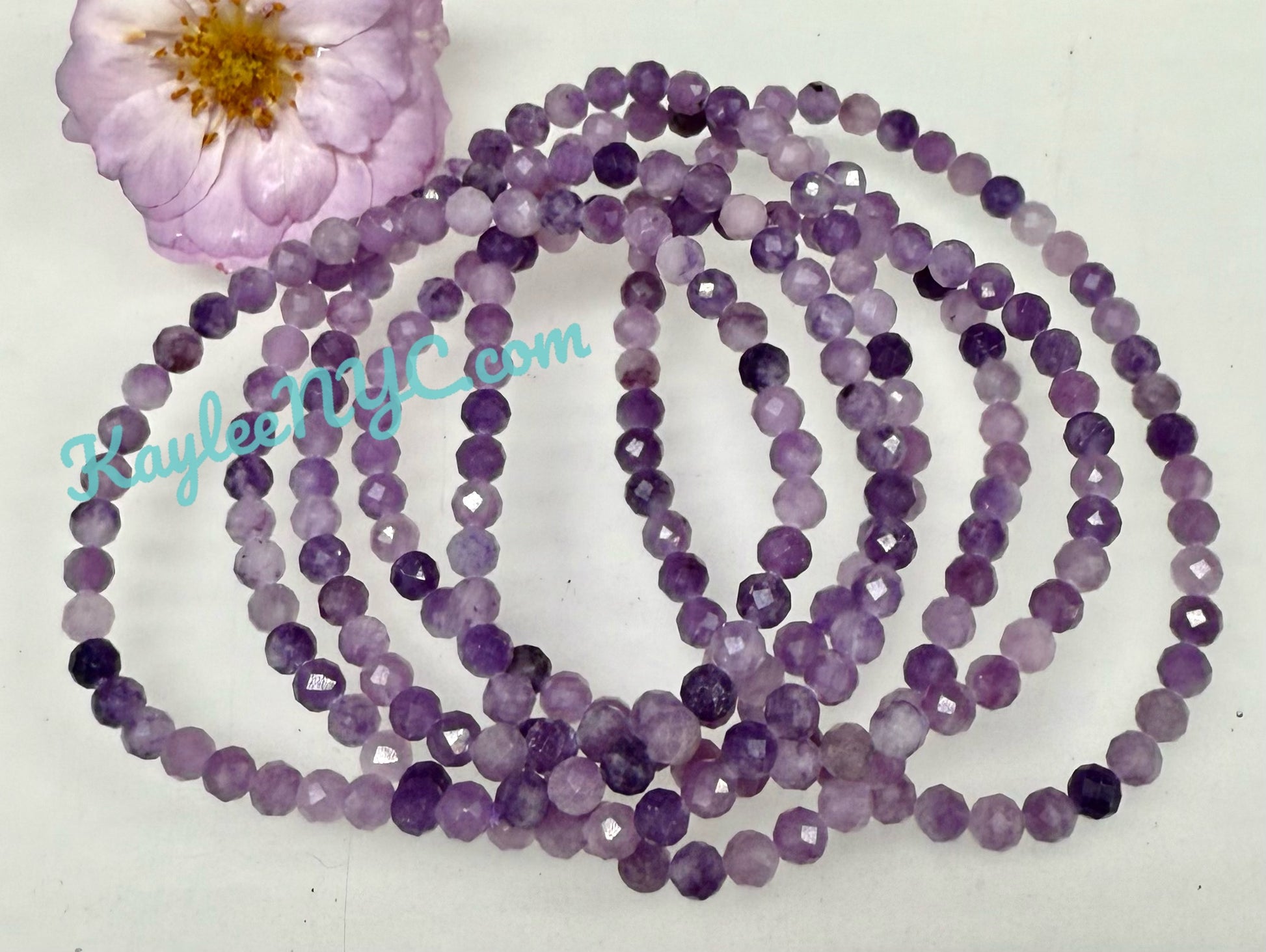 Wholesale Lot 6 Pcs Natural Faceted Lepidolite 4mm 7.5” Crystal Healing Stretch Bracelet