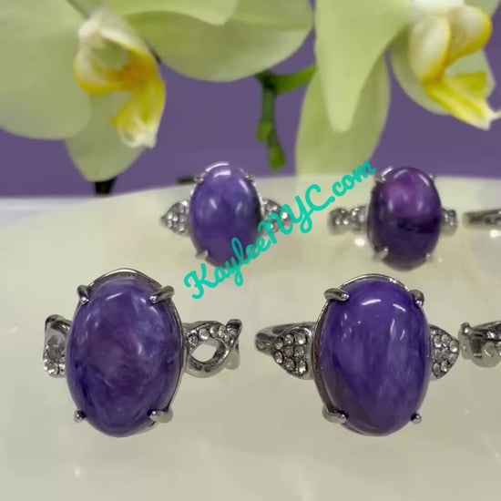 Wholesale Lot 6 pcs Natural Charoite Stainless Steel Ring 10x14mm