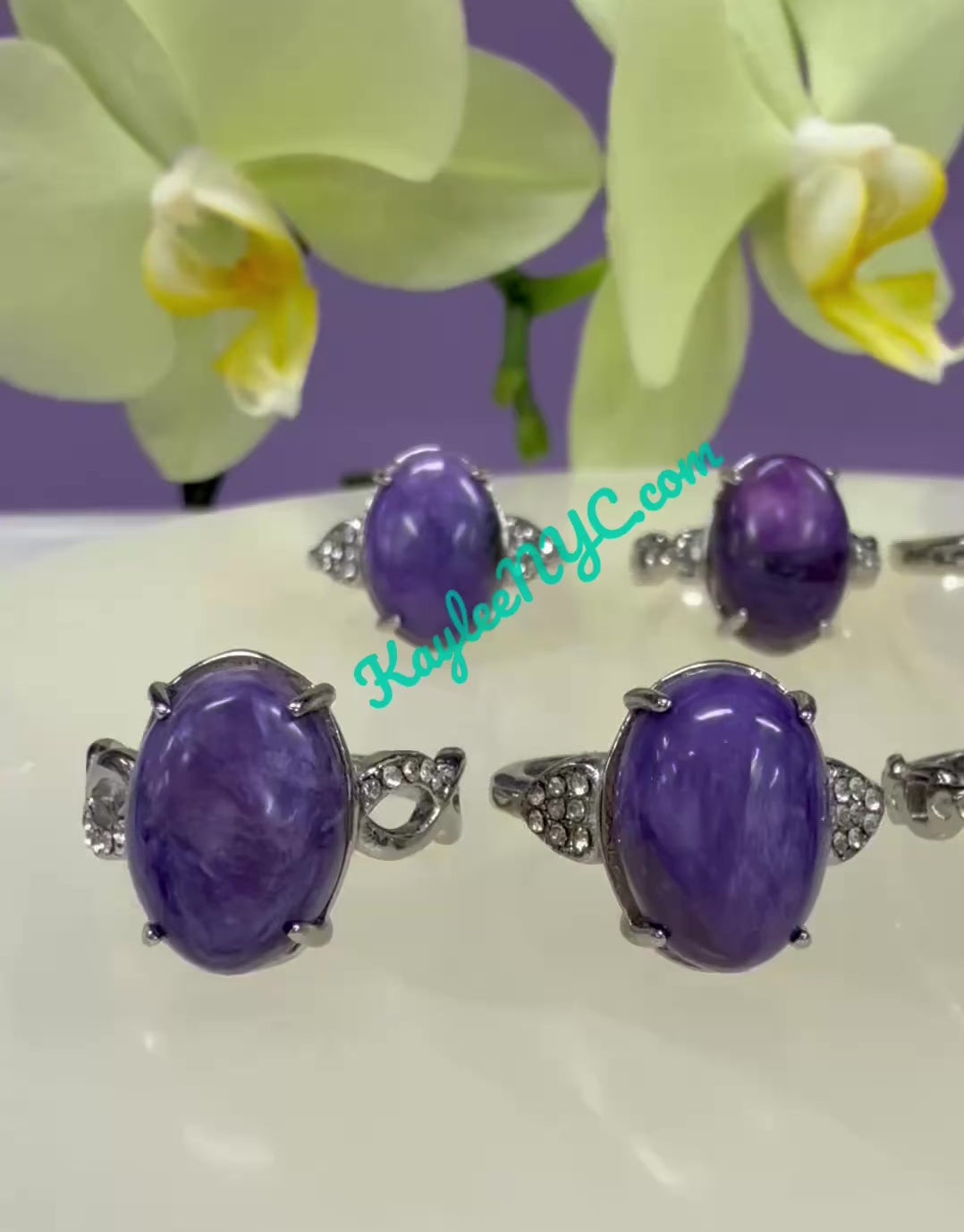 Wholesale lot 7 pcs natural Charoite Stainless Steel ring. Size of the Charoite are roughly 10x14mm each. You will receive 1 size 6, 2 size 7, 2 size 8, 1 size 9, and 1 size 10. White Bronze rings are hypoallergenic and doesn't contain lead. Condition is New.