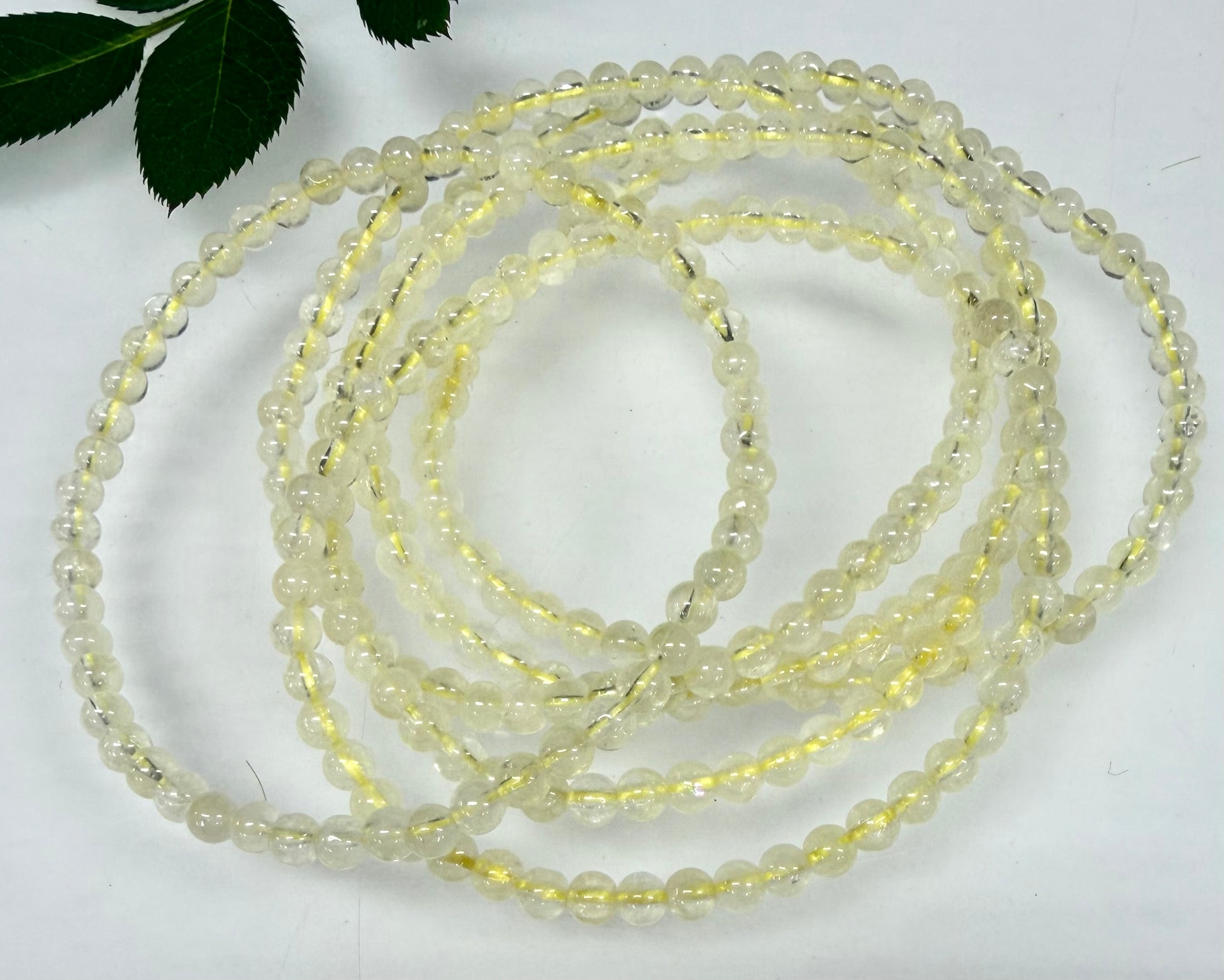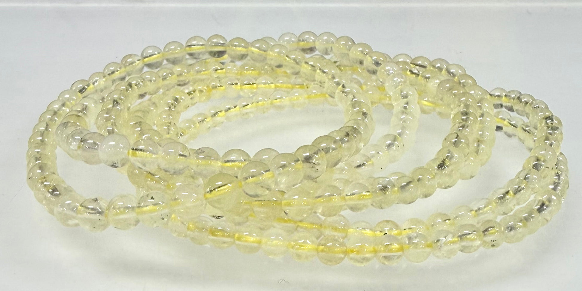 Wholesale Lot 6 Pcs Natural Lemon Quartz 4mm 7.5” Crystal Healing Stretch Bracelet