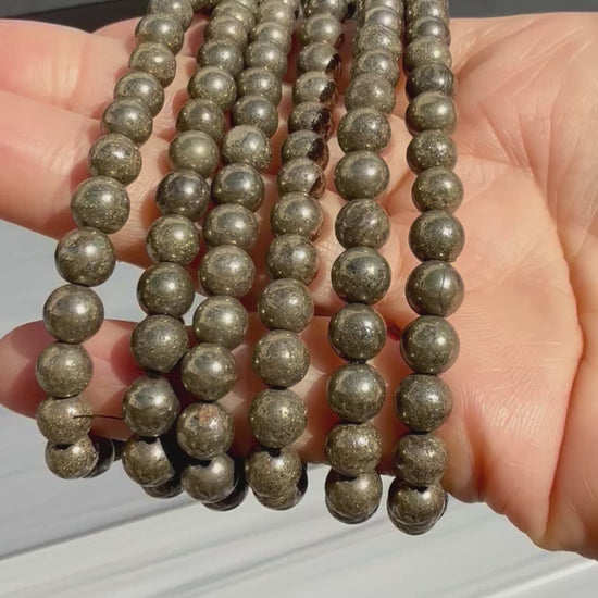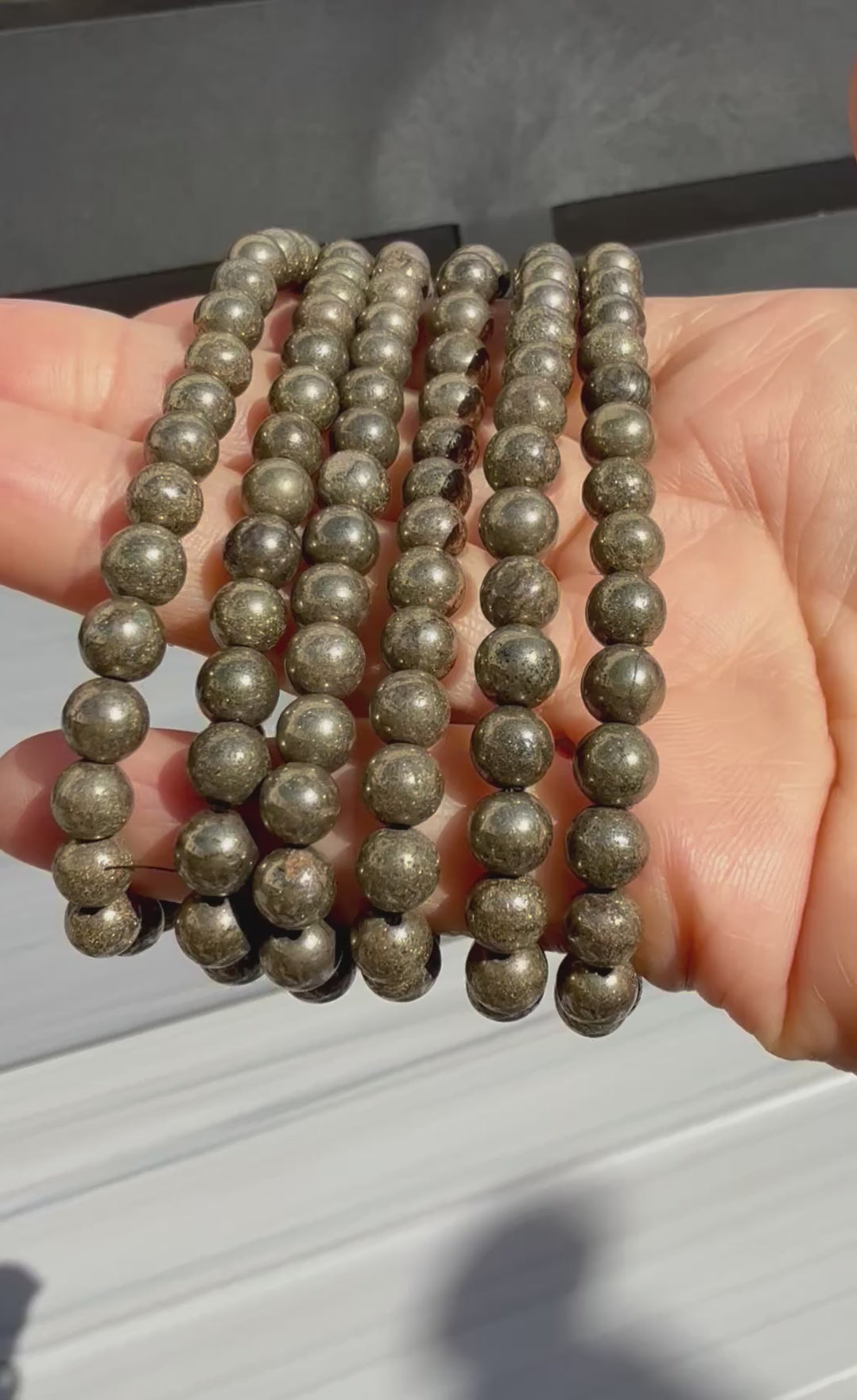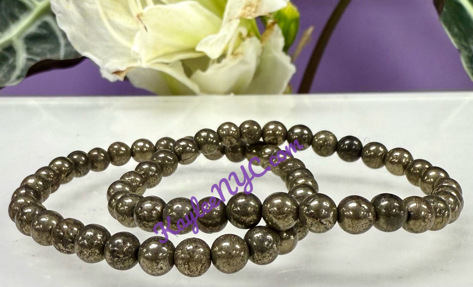 Wholesale 6 Pcs Natural Pyrite 6mm 7.5” Crystal Healing Stretch Bracelet