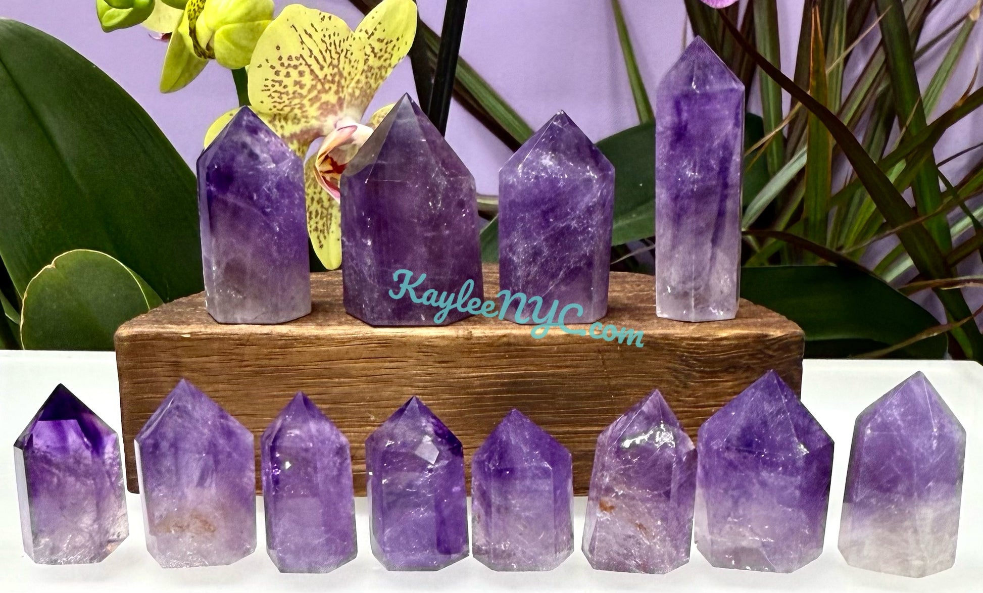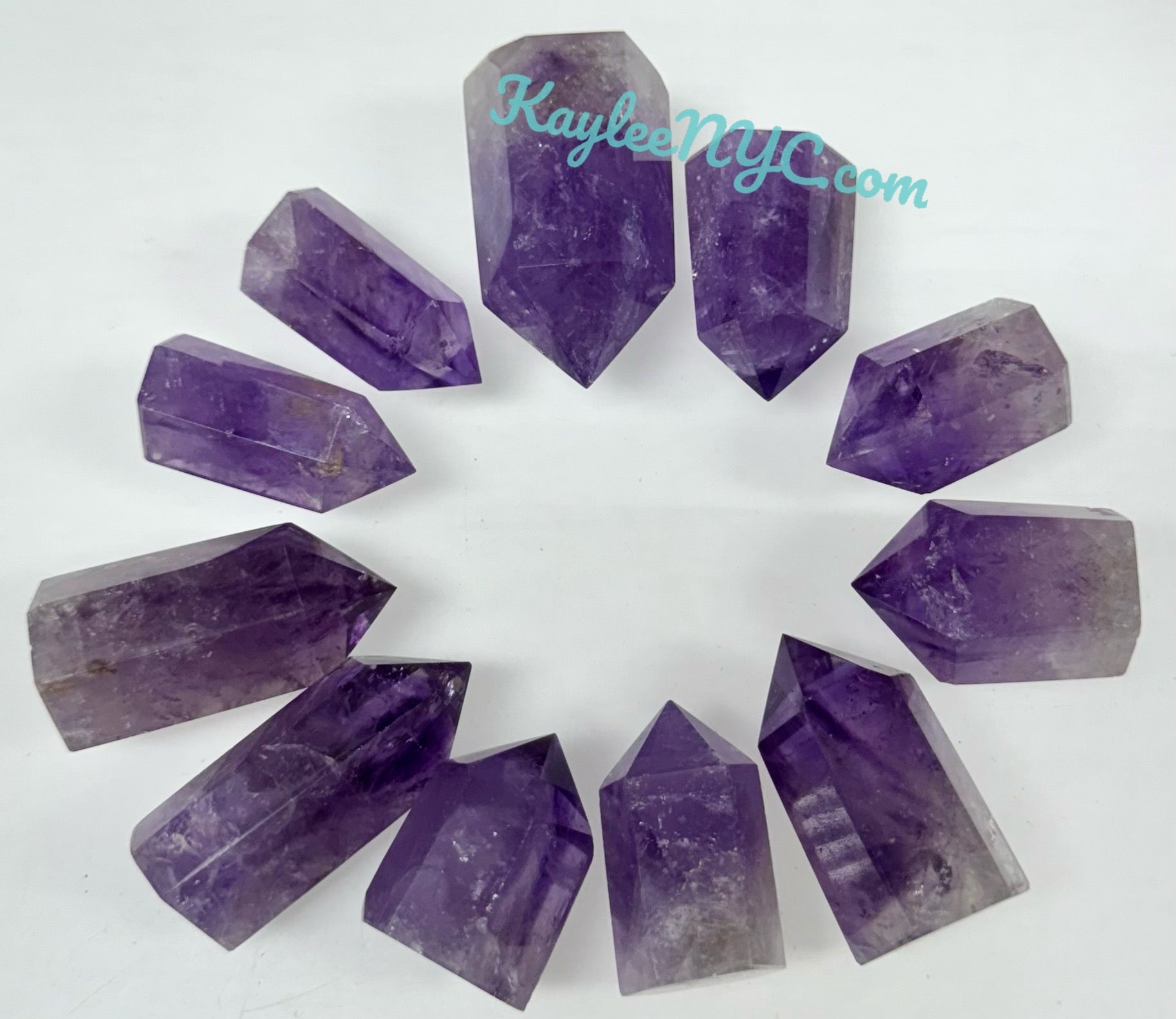 Wholesale lot 0.5 lb Natural Amethyst Obelisk crystals. Tower can range from 0.5” to 2.5” in length and 6 to 9 pcs per lot. Condition is New.