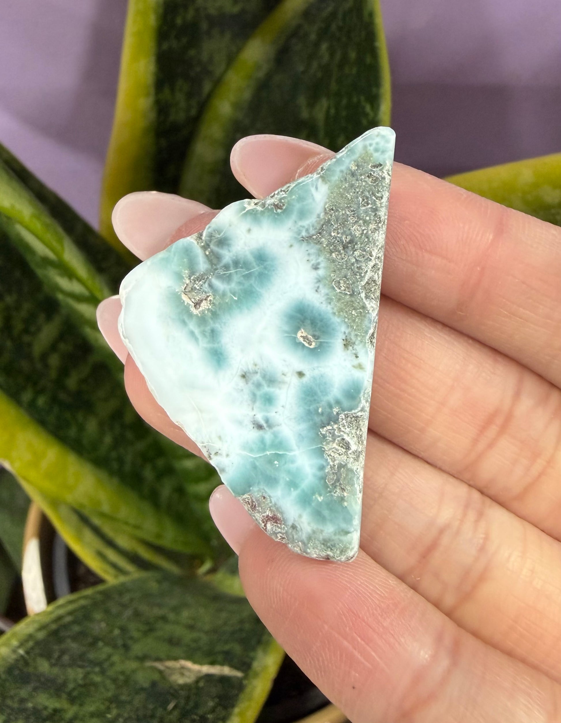 This wholesale lot includes 1 lb of natural Larimar slabs. Slabs range in size from approximately 1” to 2.3”. Each lot contains about 15–20 pieces.