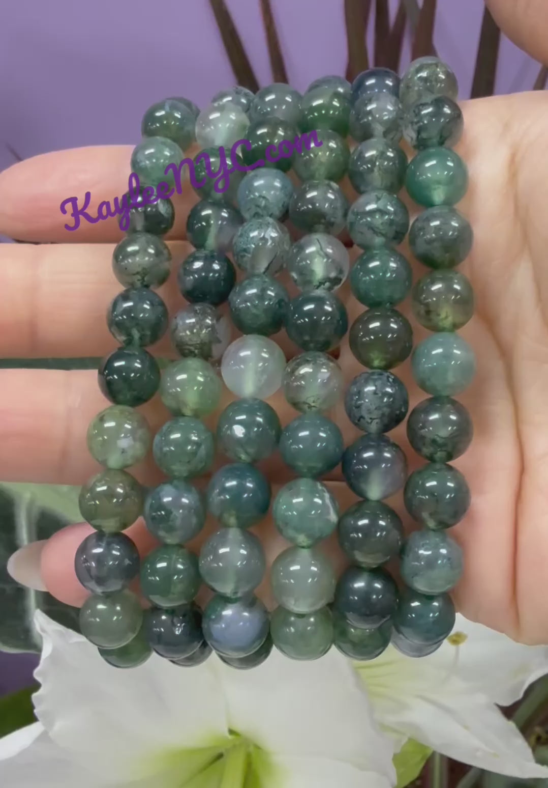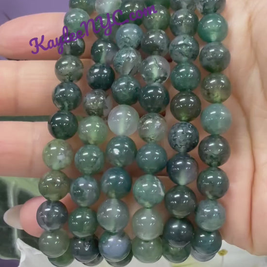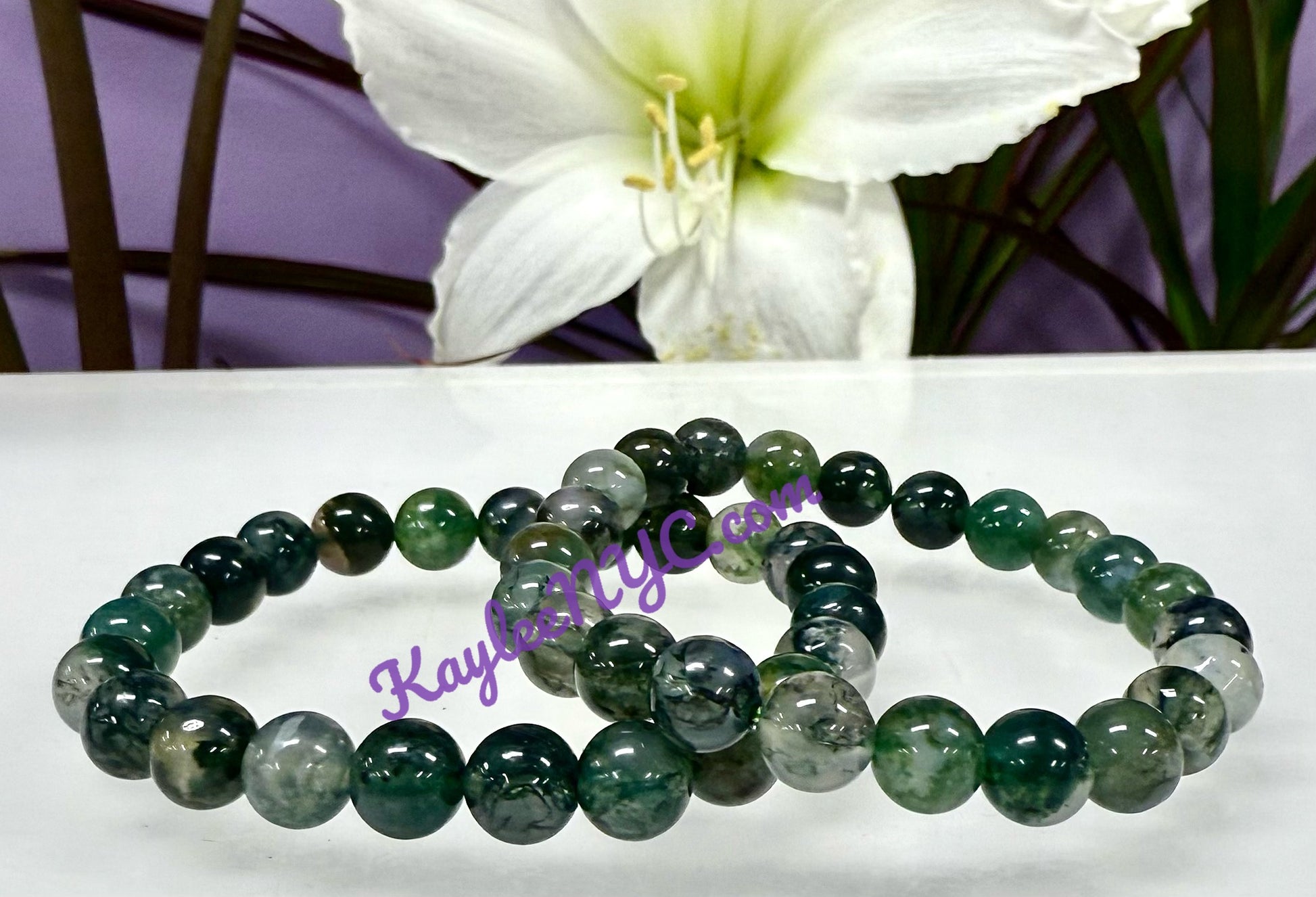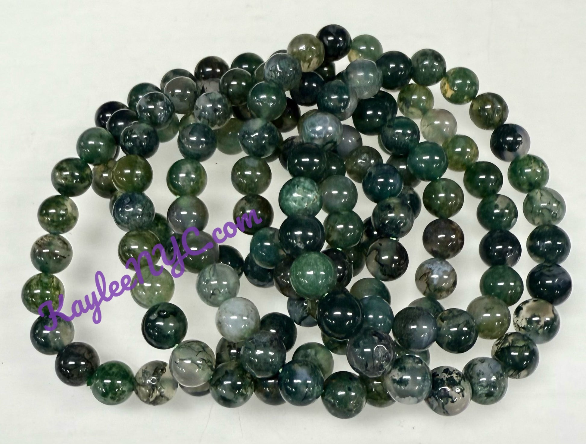 Wholesale Lot 6 Pcs Moss Agate 8mm 7.5” Crystal Healing Stretch Bracelet