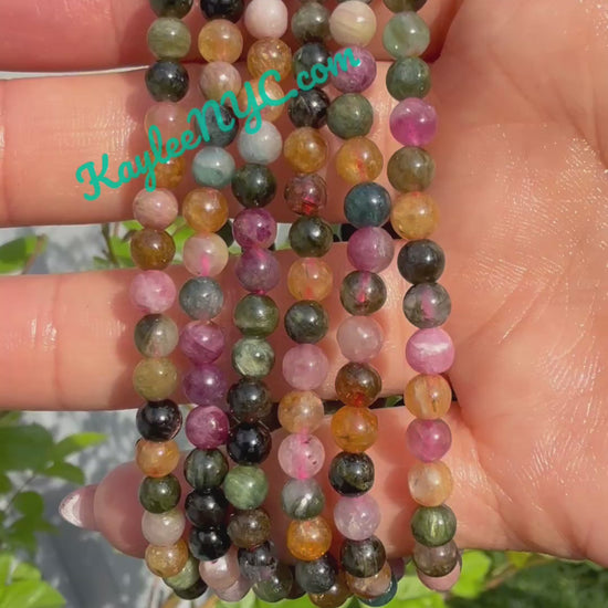 Wholesale Lot 6 Pcs Natural Watermelon Tourmaline 3.5mm 7.5” Crystal Healing Stretch Bracelet